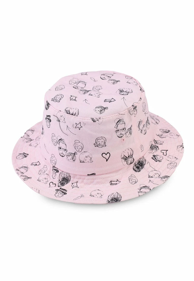 – Solid tone illustrated bucket hat
