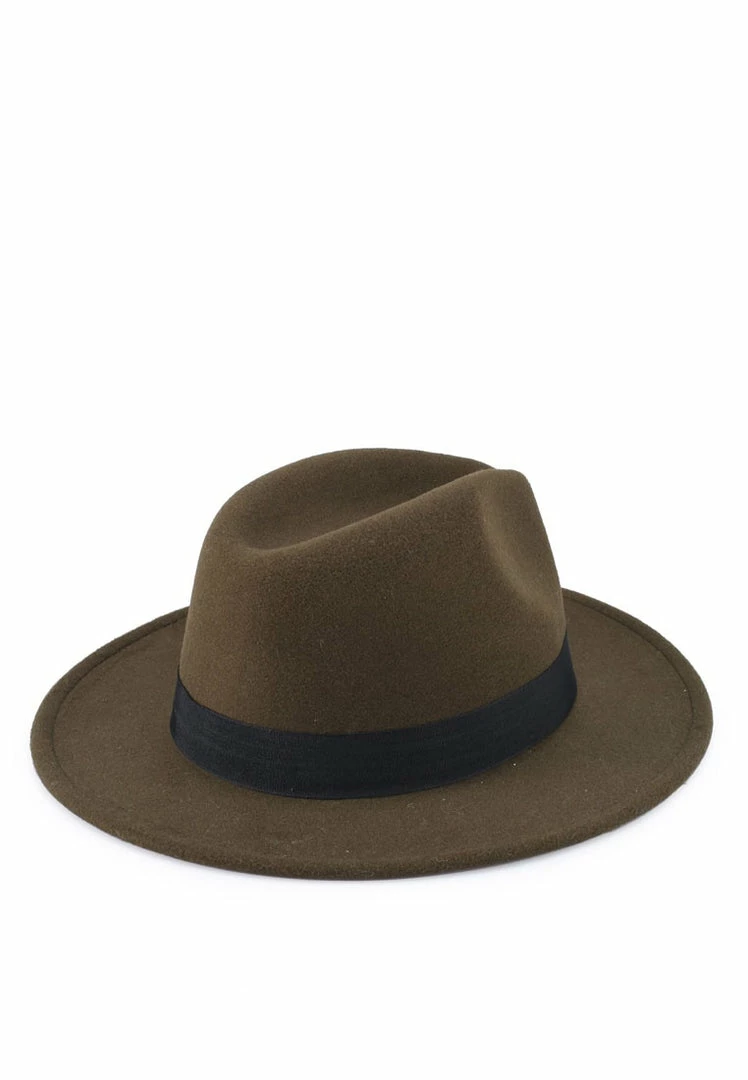 – Fedora hat with ribbon trim