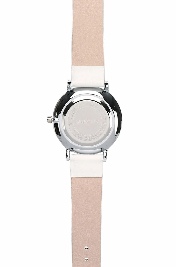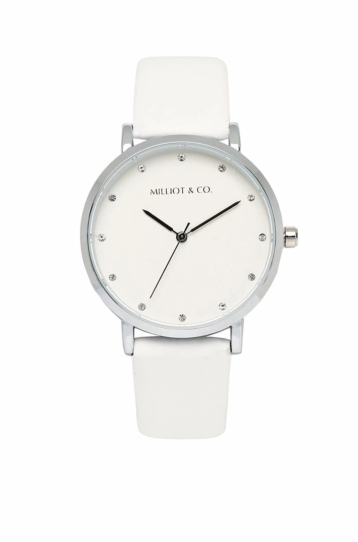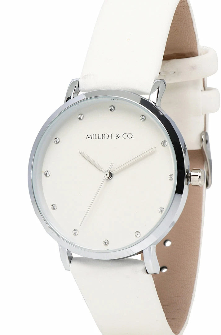Milliot & Co Louis Silver Pu Strap Watch (White) PU Strap Watches