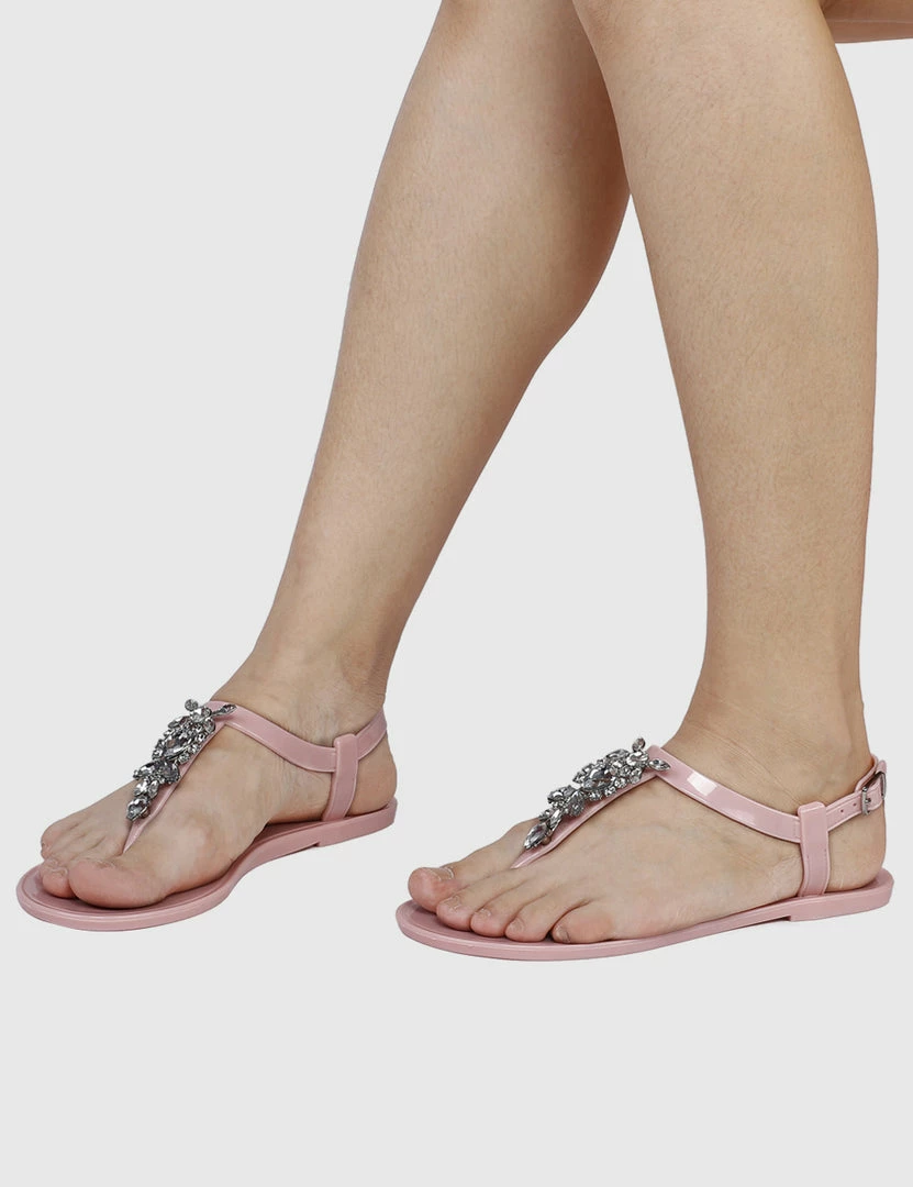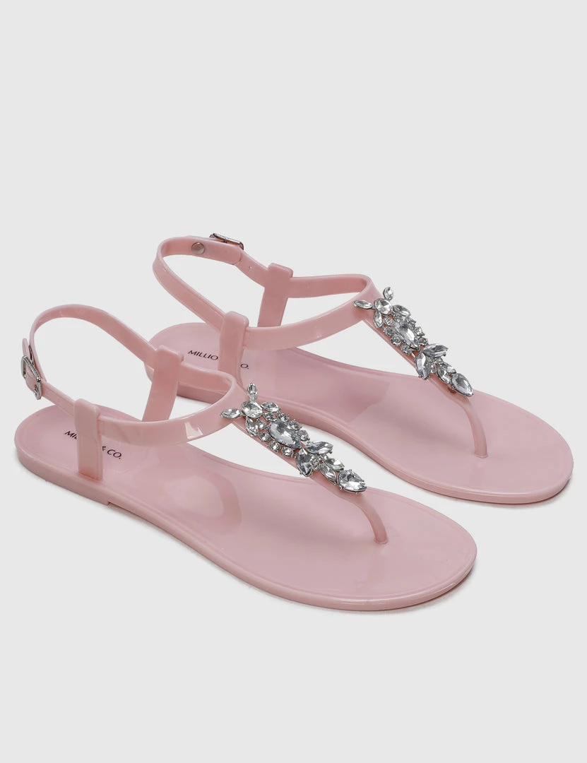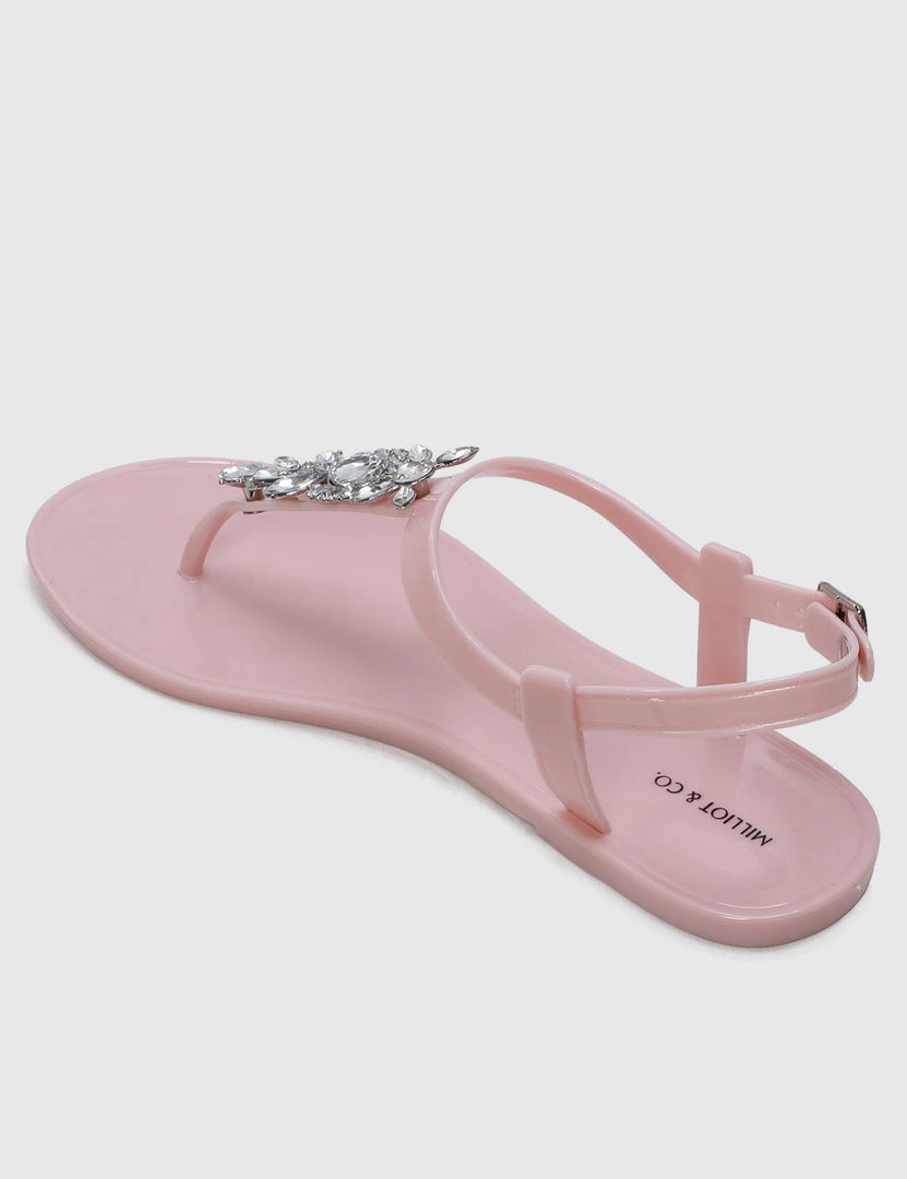 Milliot & Co Flower Power T-Strap Jelly Sandals (Pink) Shoes