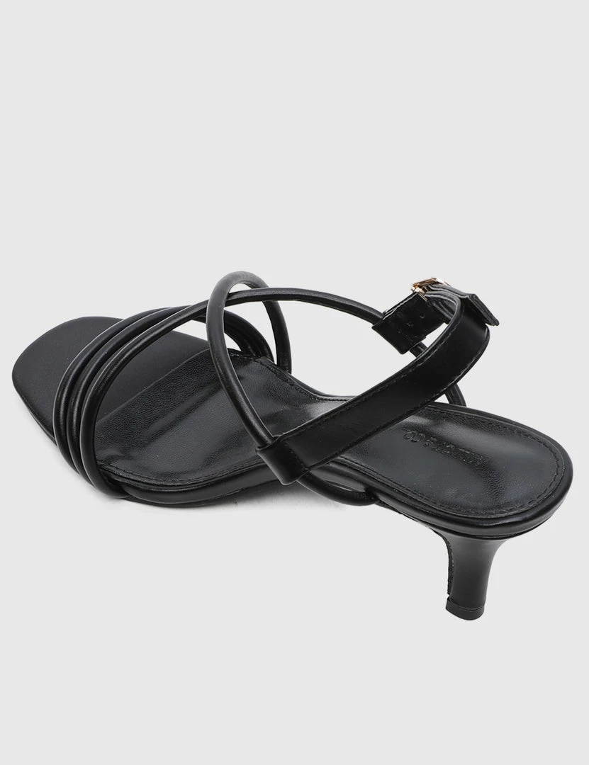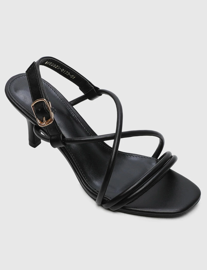 – Solid tone strappy buckle heels