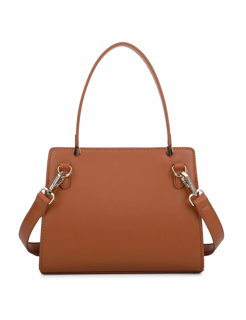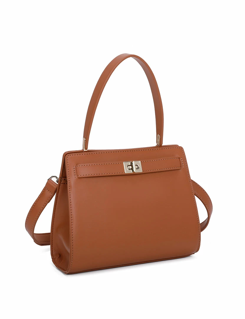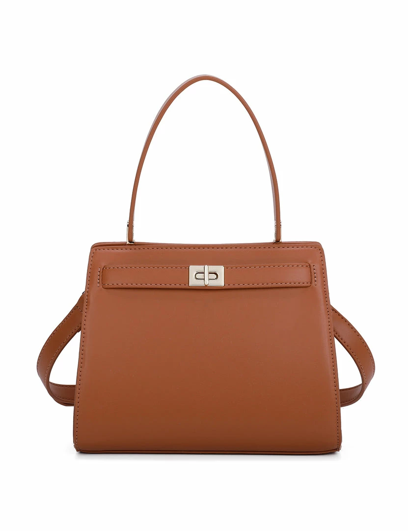 – Solid tone square top handle bag