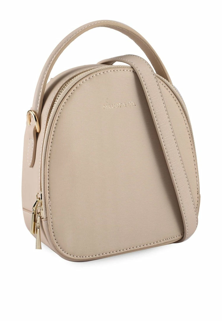 – Solid tone backpack with top handle