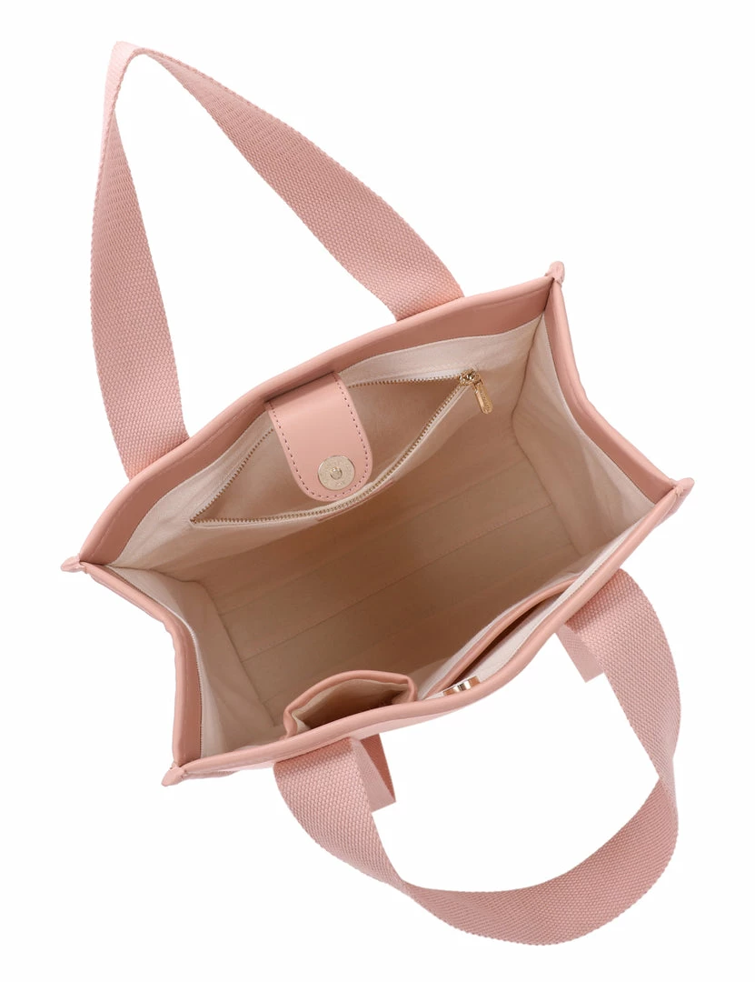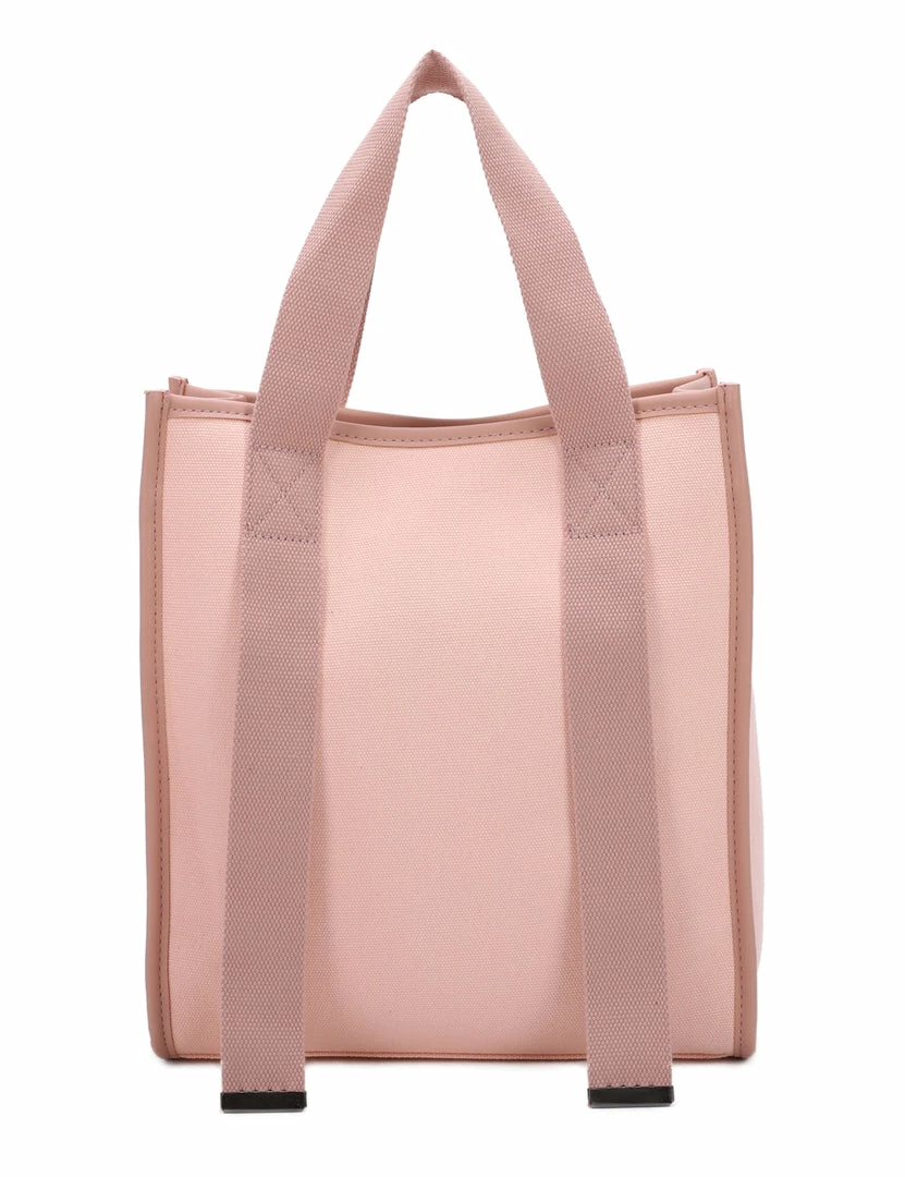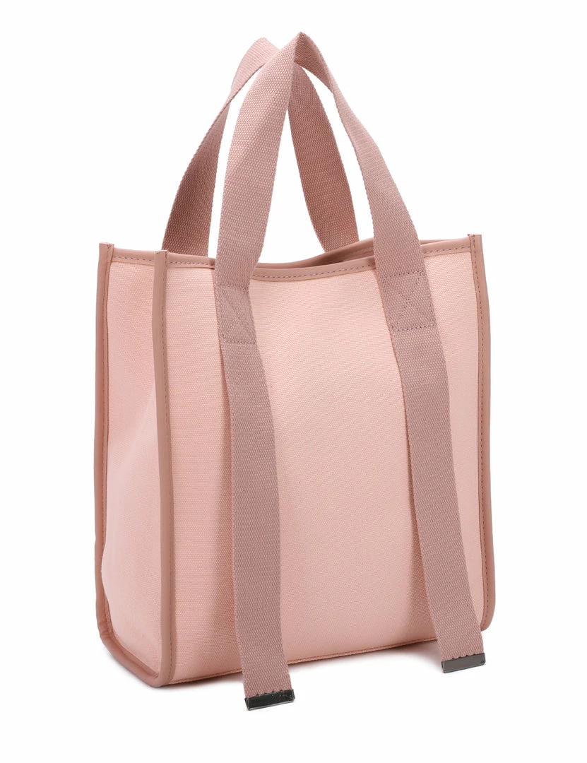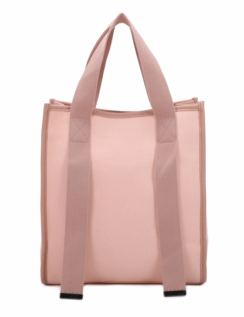 – Colourblock top handle bag with faux leather trims