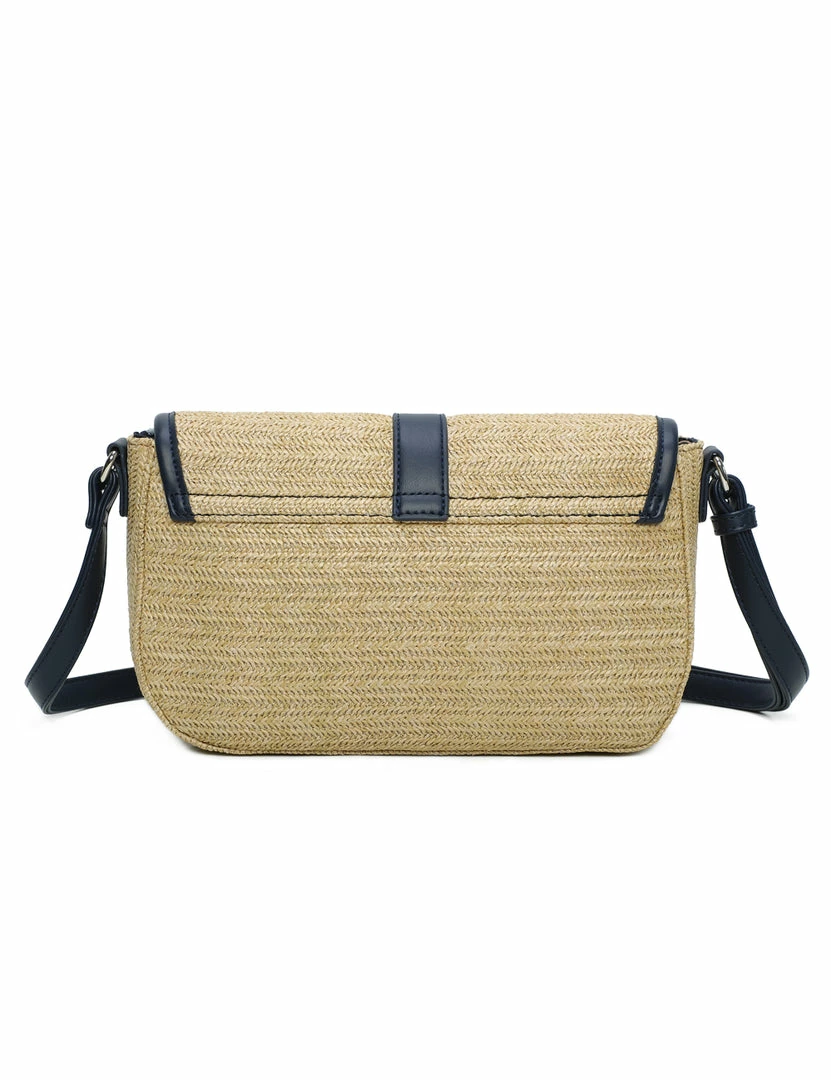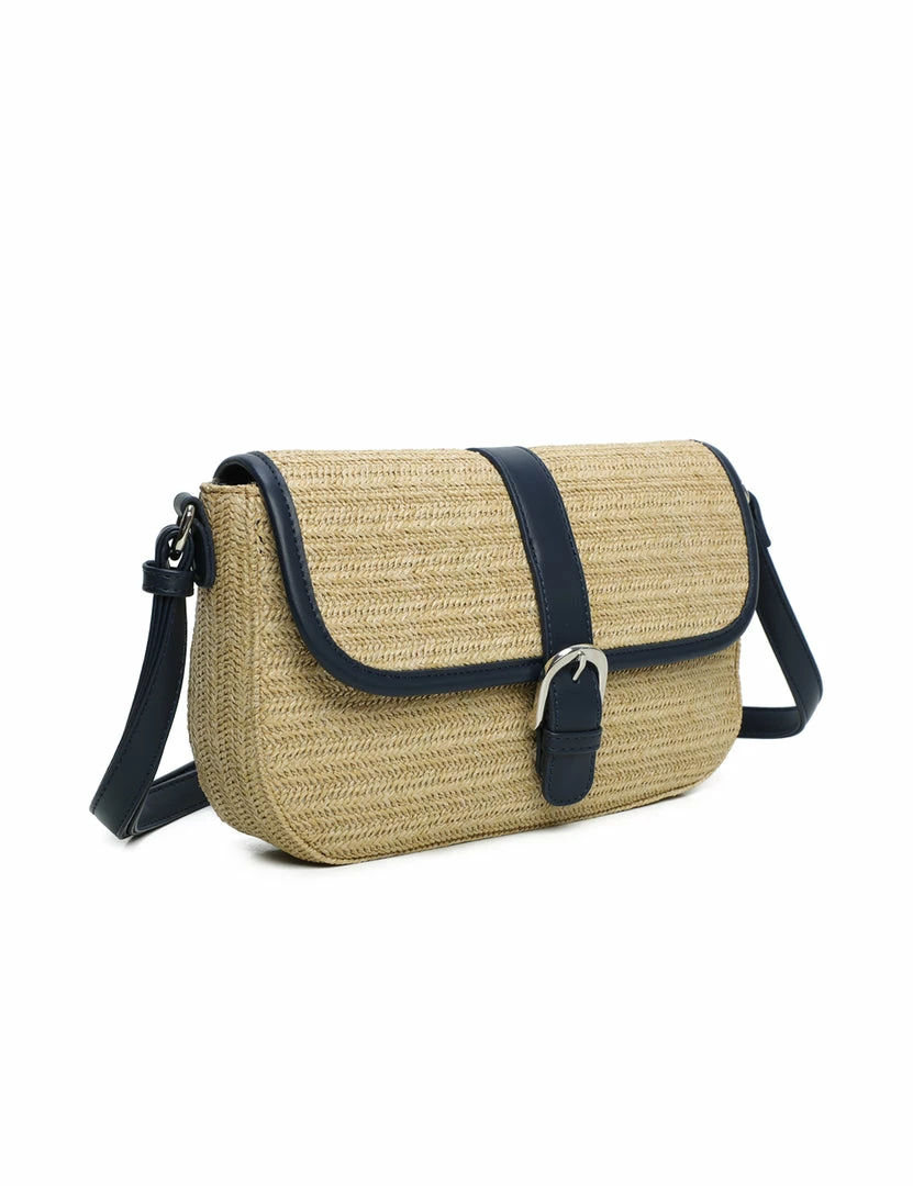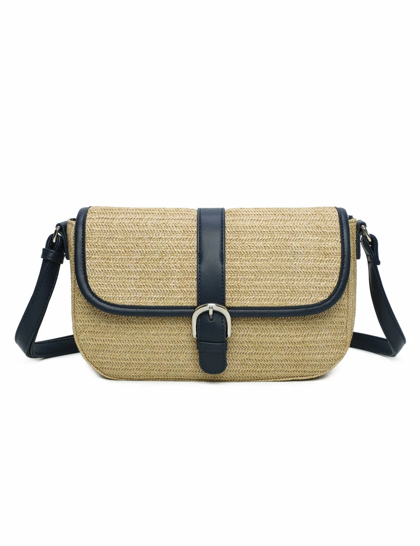 – Contrast trims straw sling bag