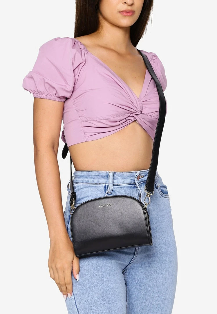 – Solid tone half moon sling bag