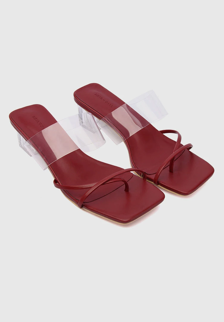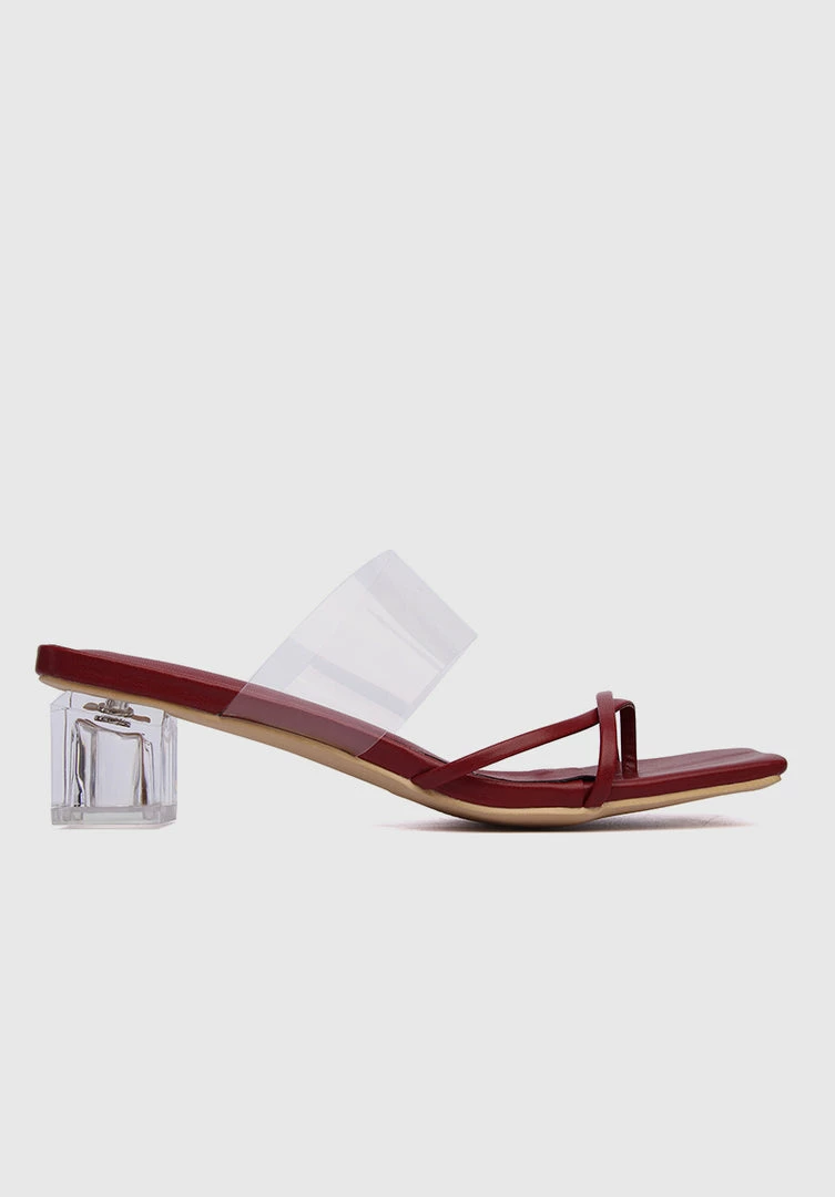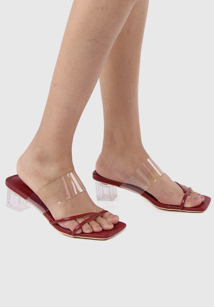 – Open toe heels with transparent strap detail