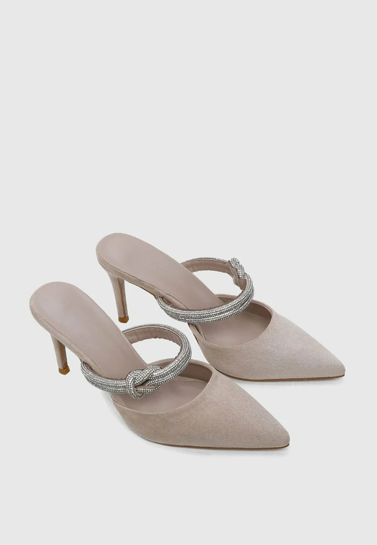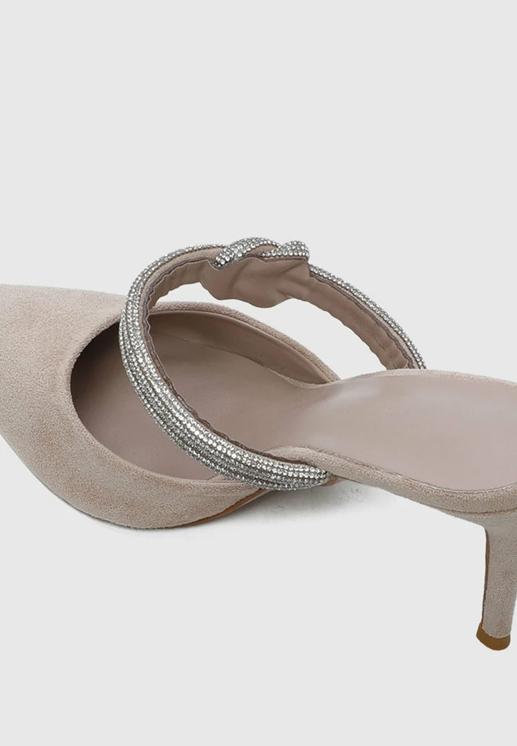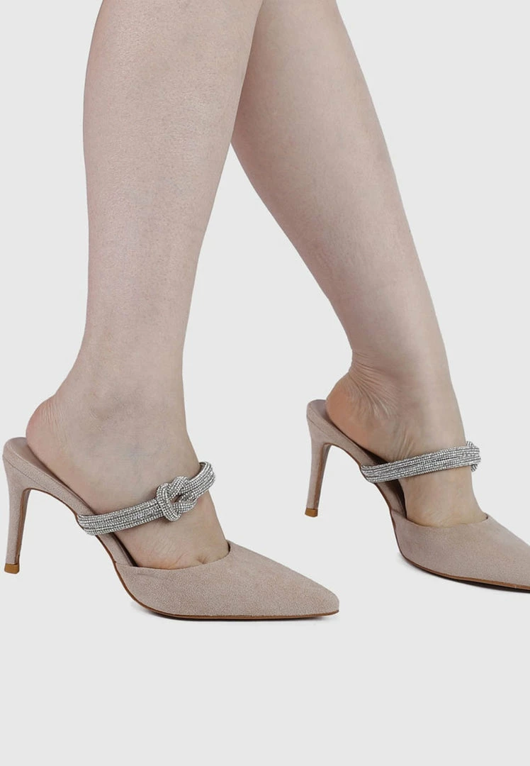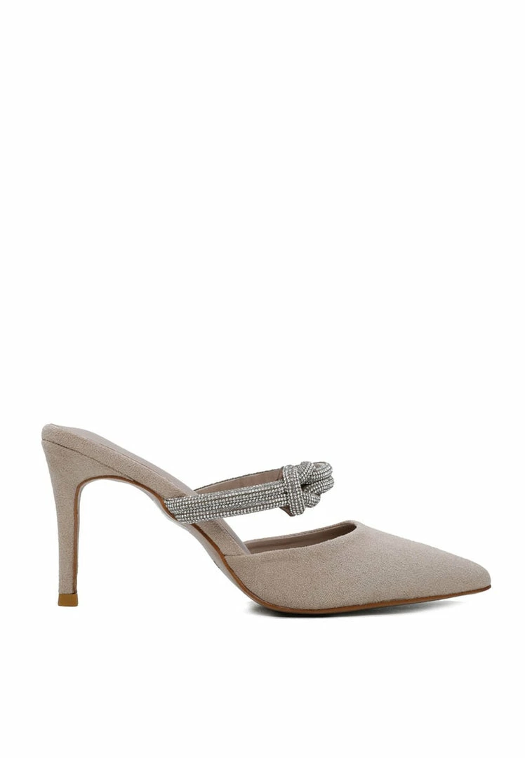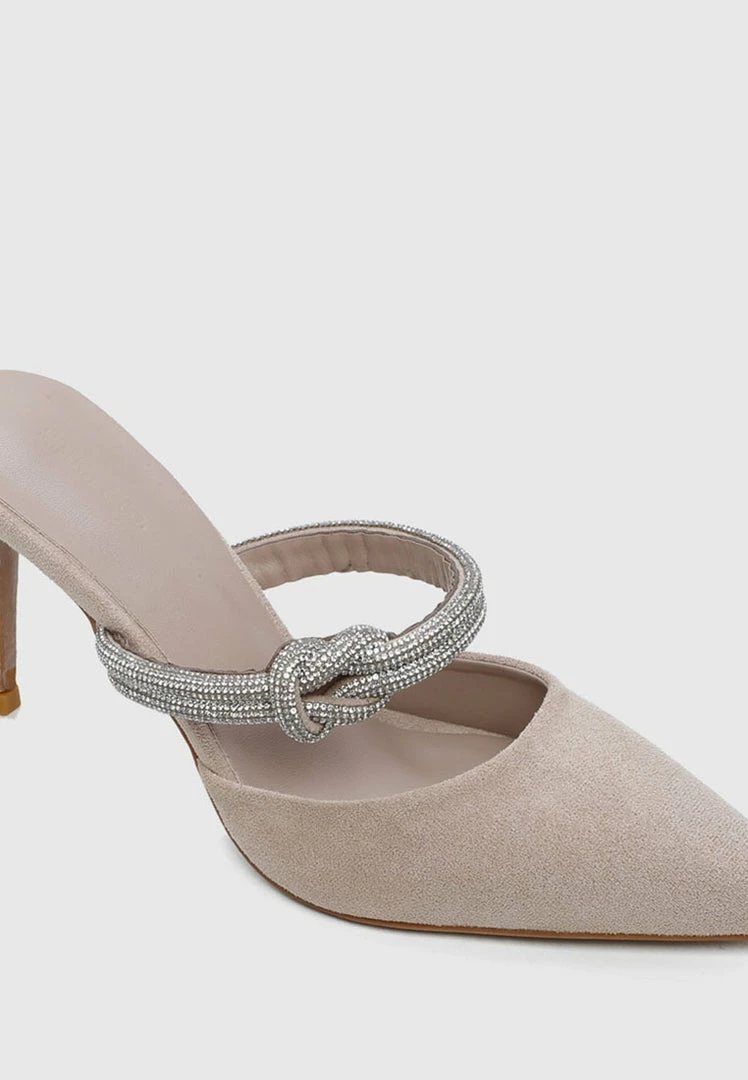 – Faux suede pumps with knot detail