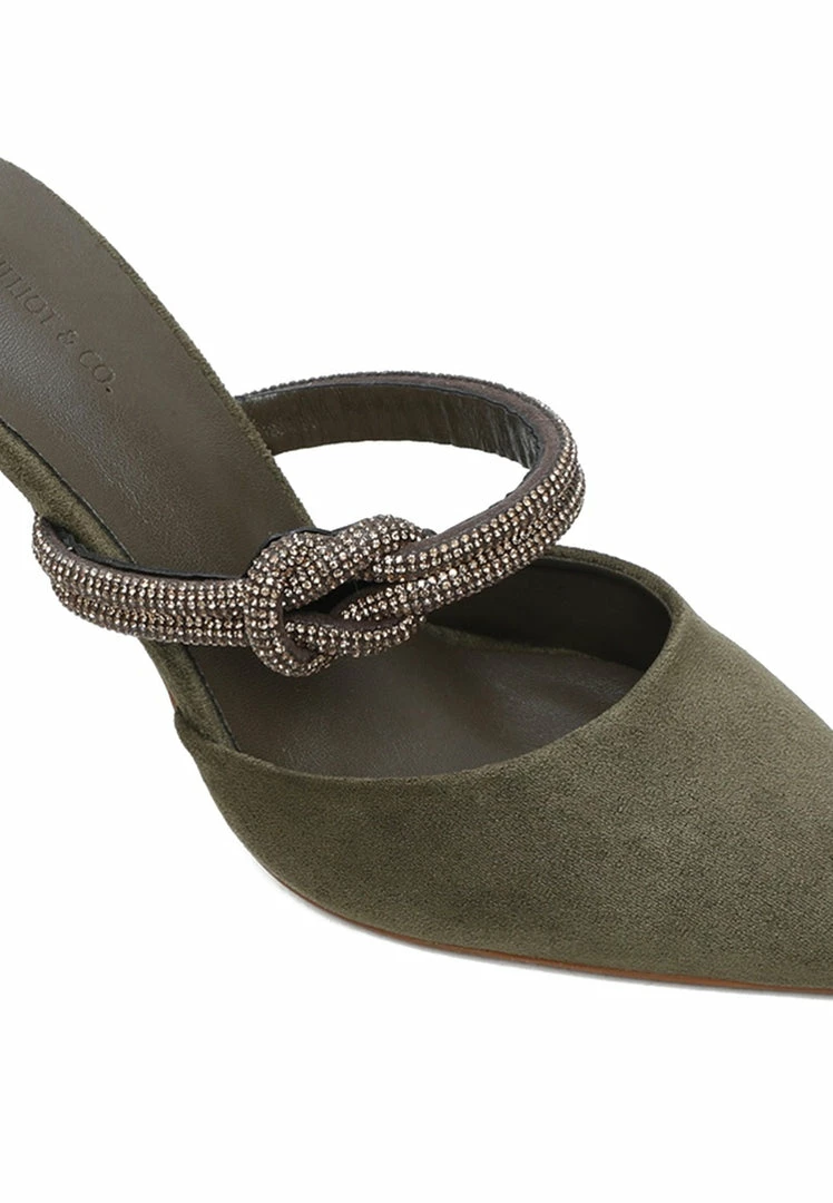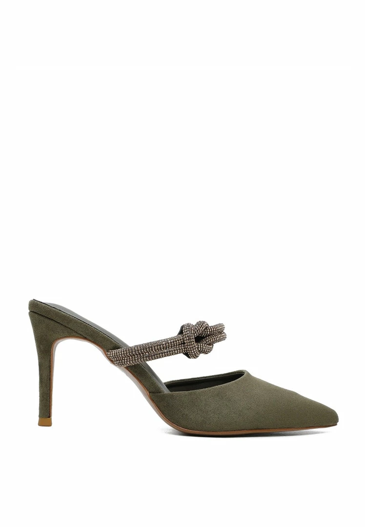 – Faux suede pumps with knot detail