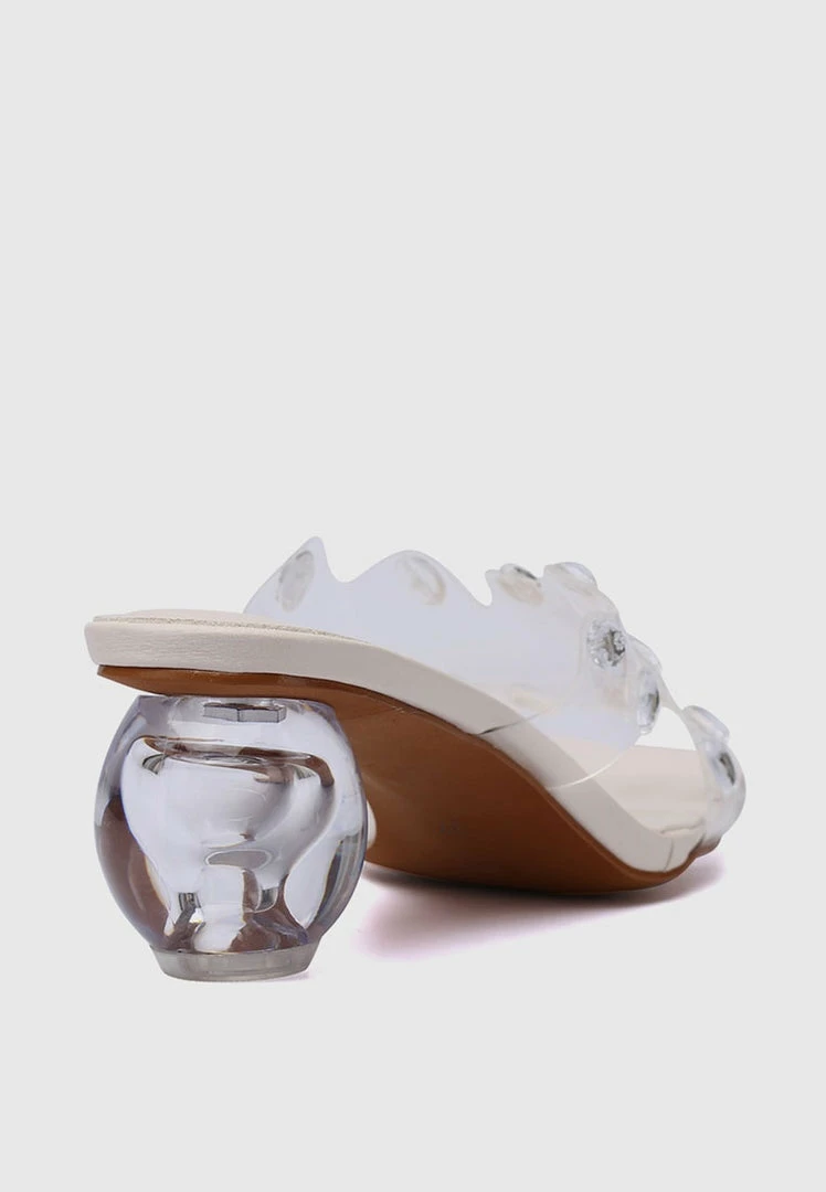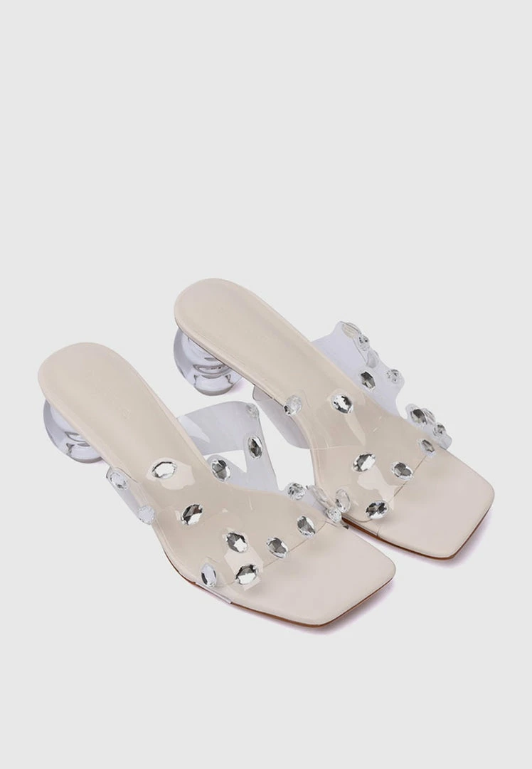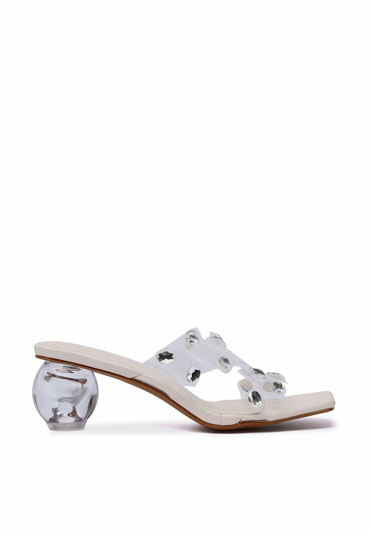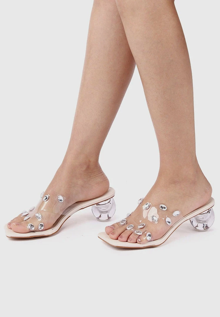– Dome transparent block heels with crystals straps