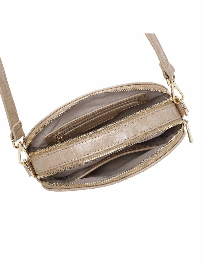 – Croc effect double zip sling bag