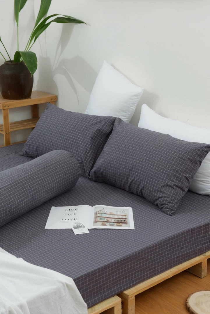 – Grid print super single quilt cover set