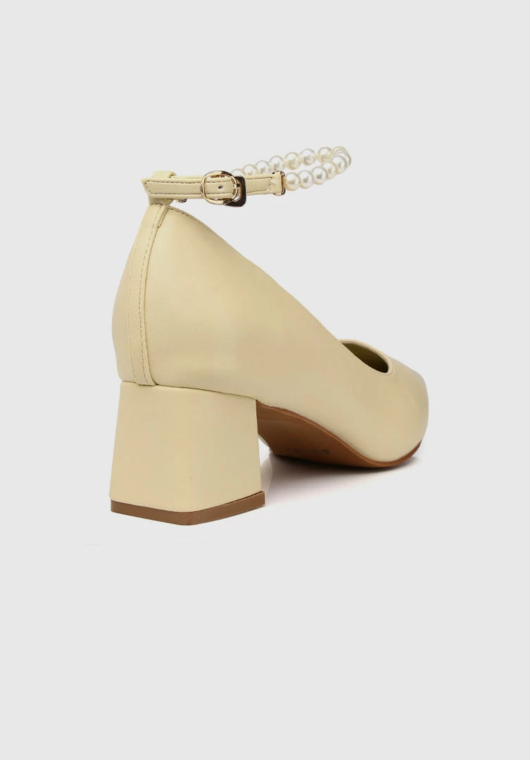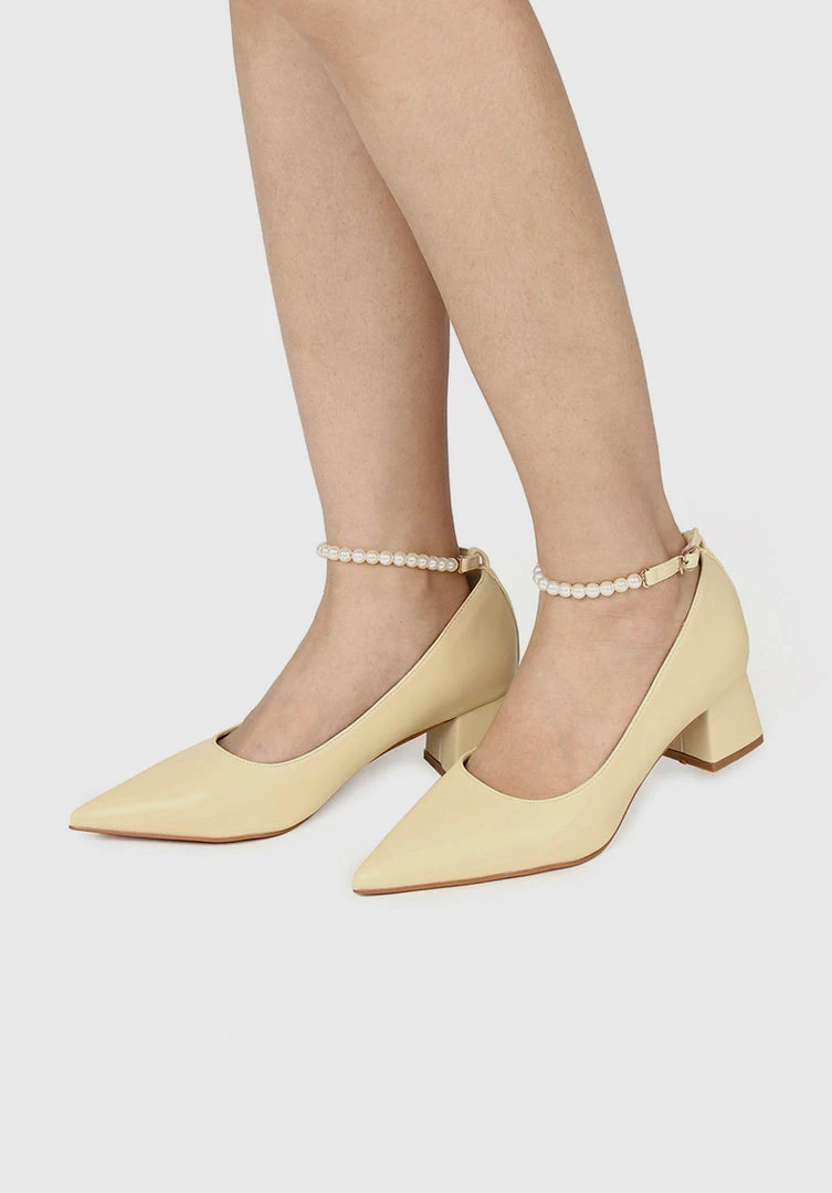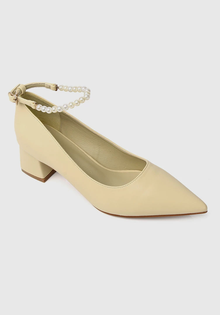 – Pointed toe heel with Pearls Ankle Strap