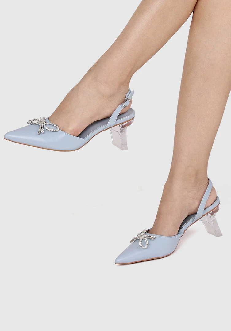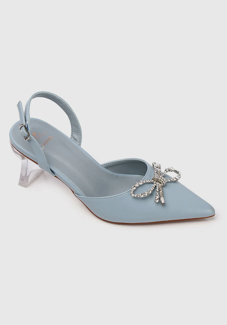 – Translucent PU with crystal embellished bow
