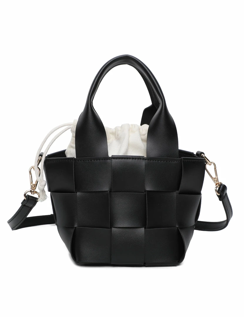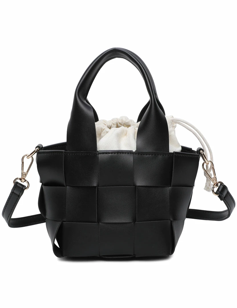 – Quilted top handle bag with drawstring pouch