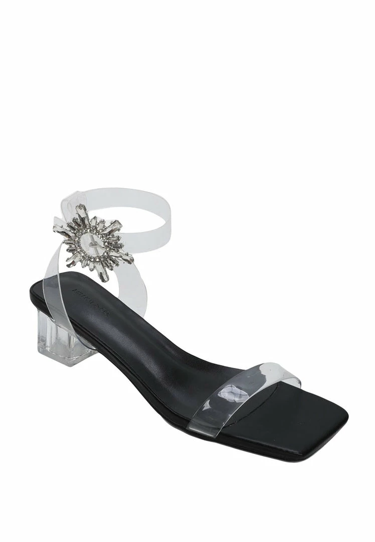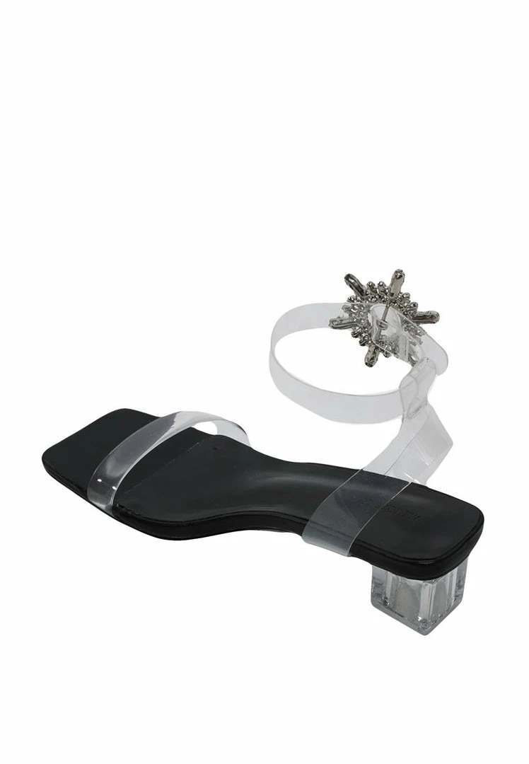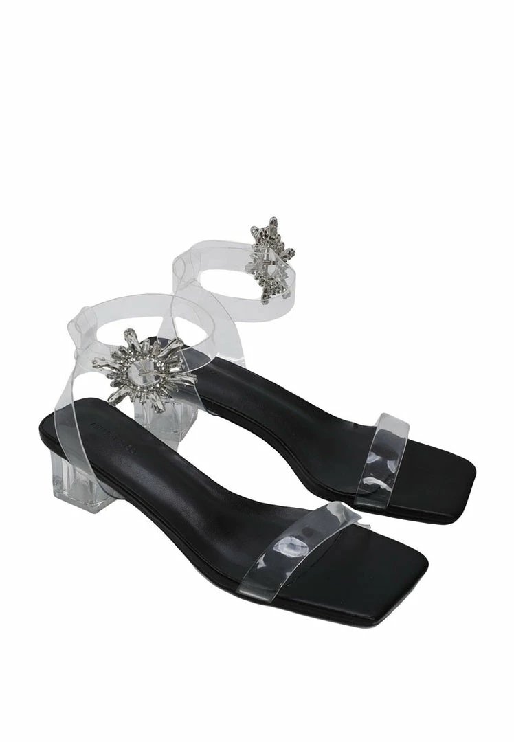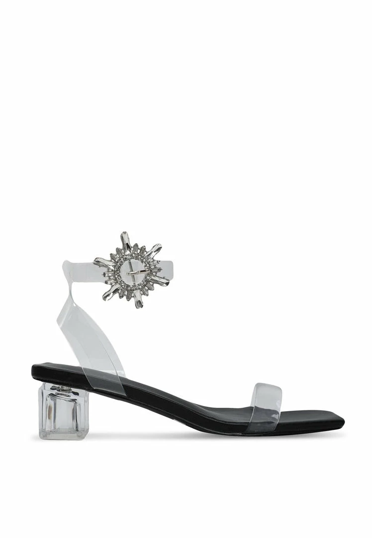 – Transparent strappy blocked heels with embellished buckle