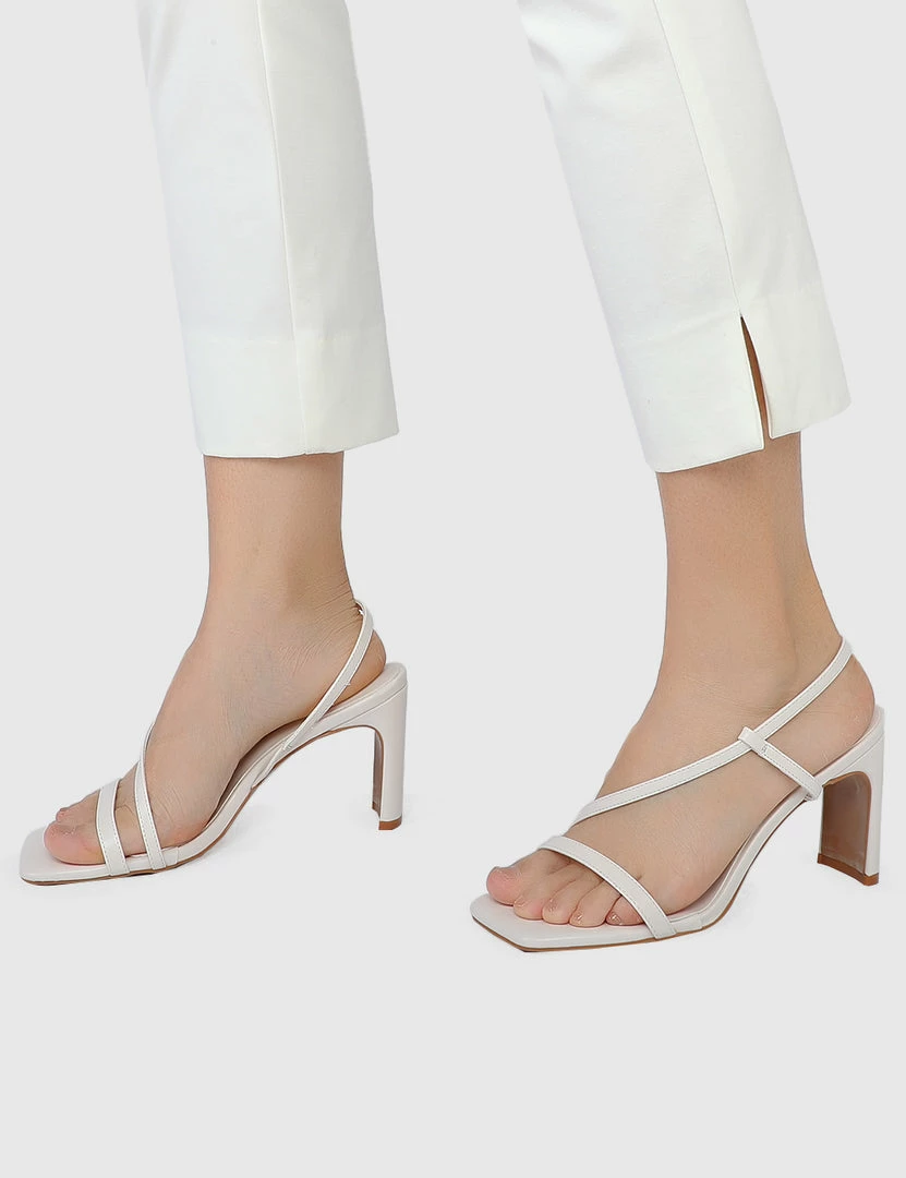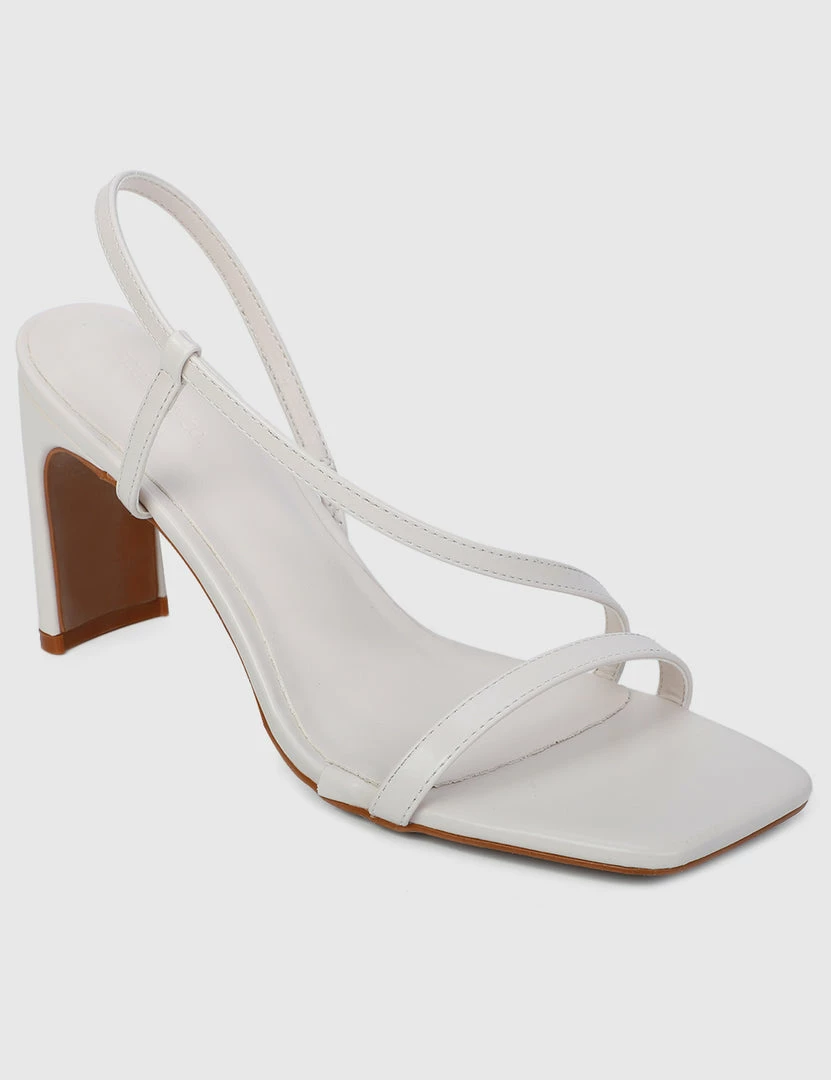 – Solid tone faux leather strappy heels