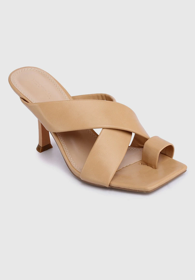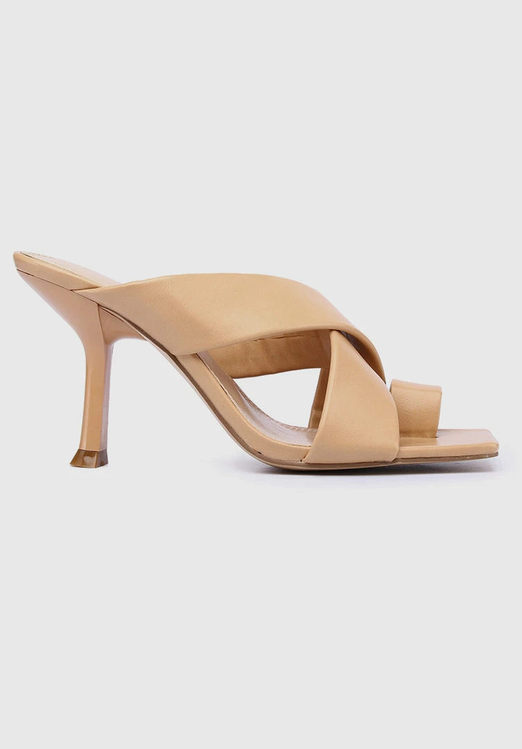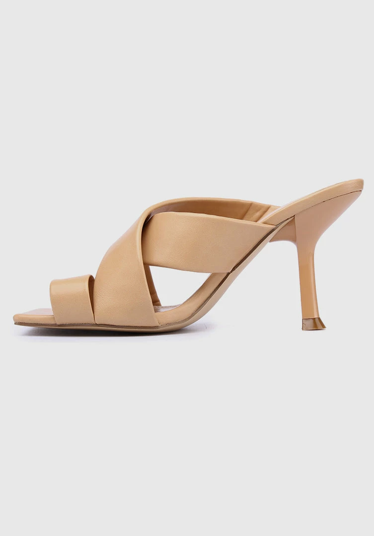 – Faux leather crossover heels