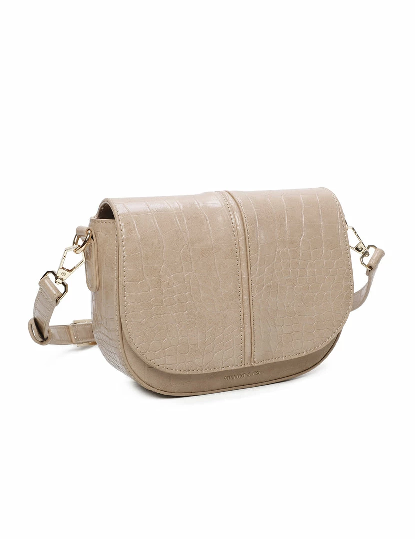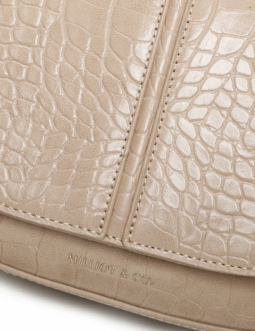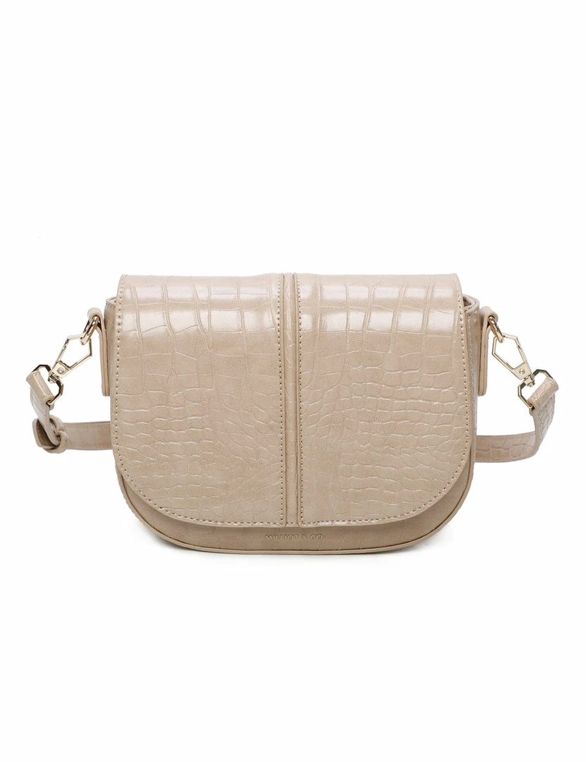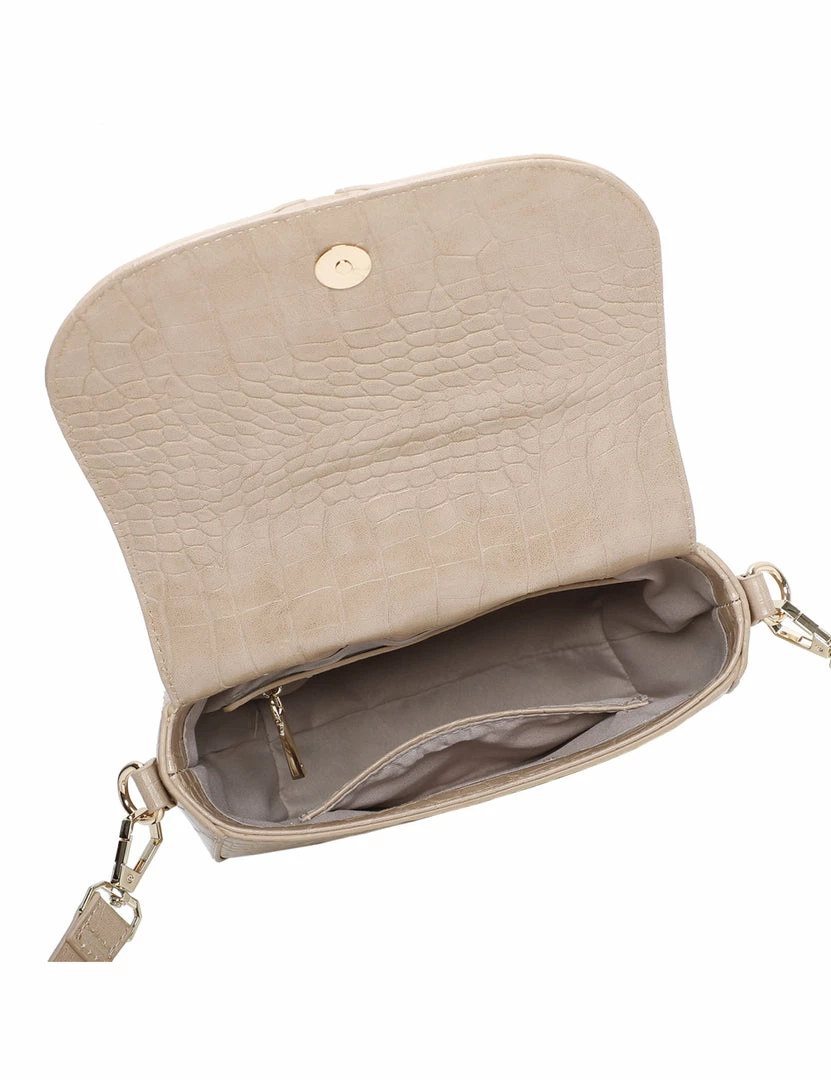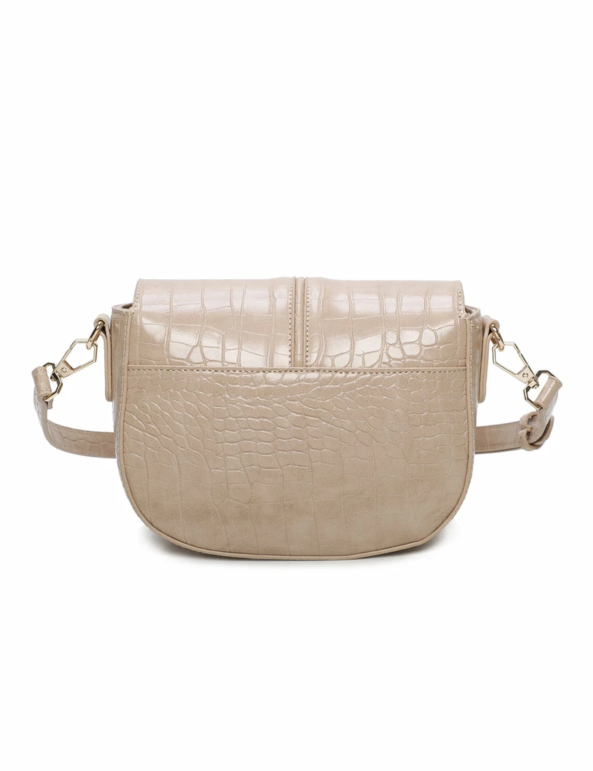 – Solid tone croc effect crossbody bag