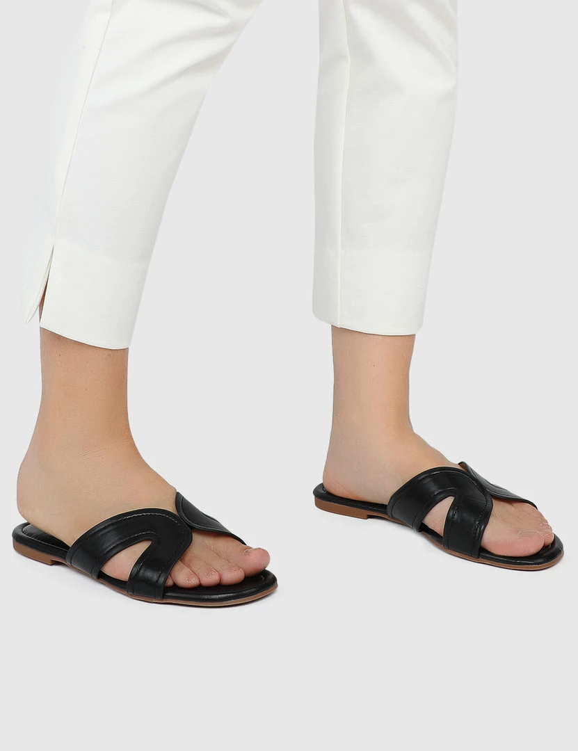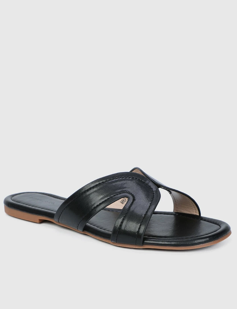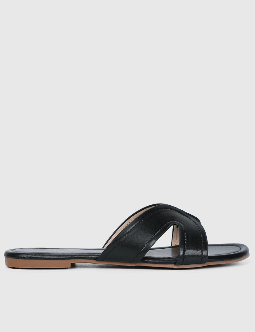 – Solid tone patent flat sandals