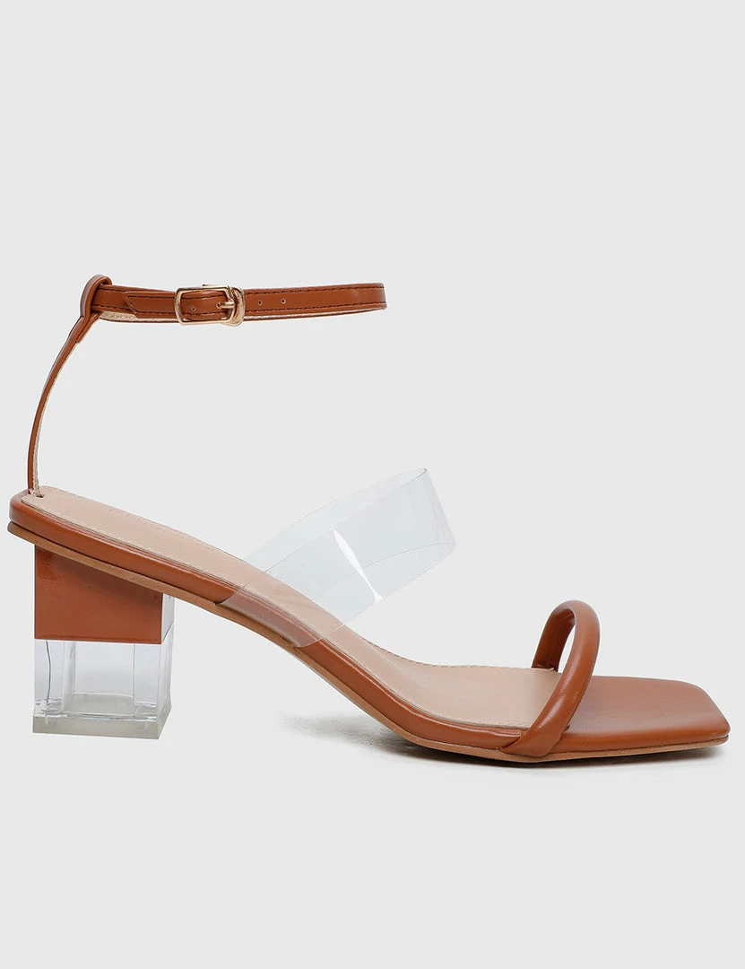 – Acrylic block heels with transparent strap