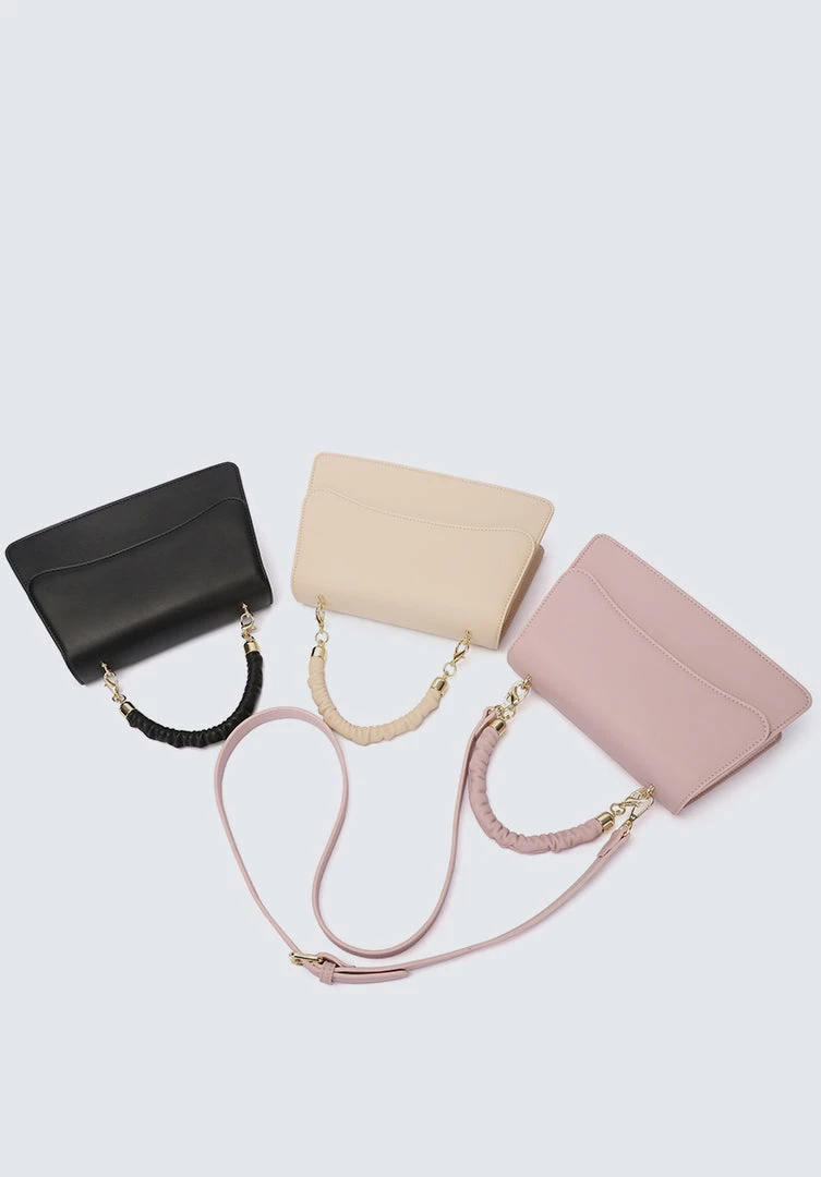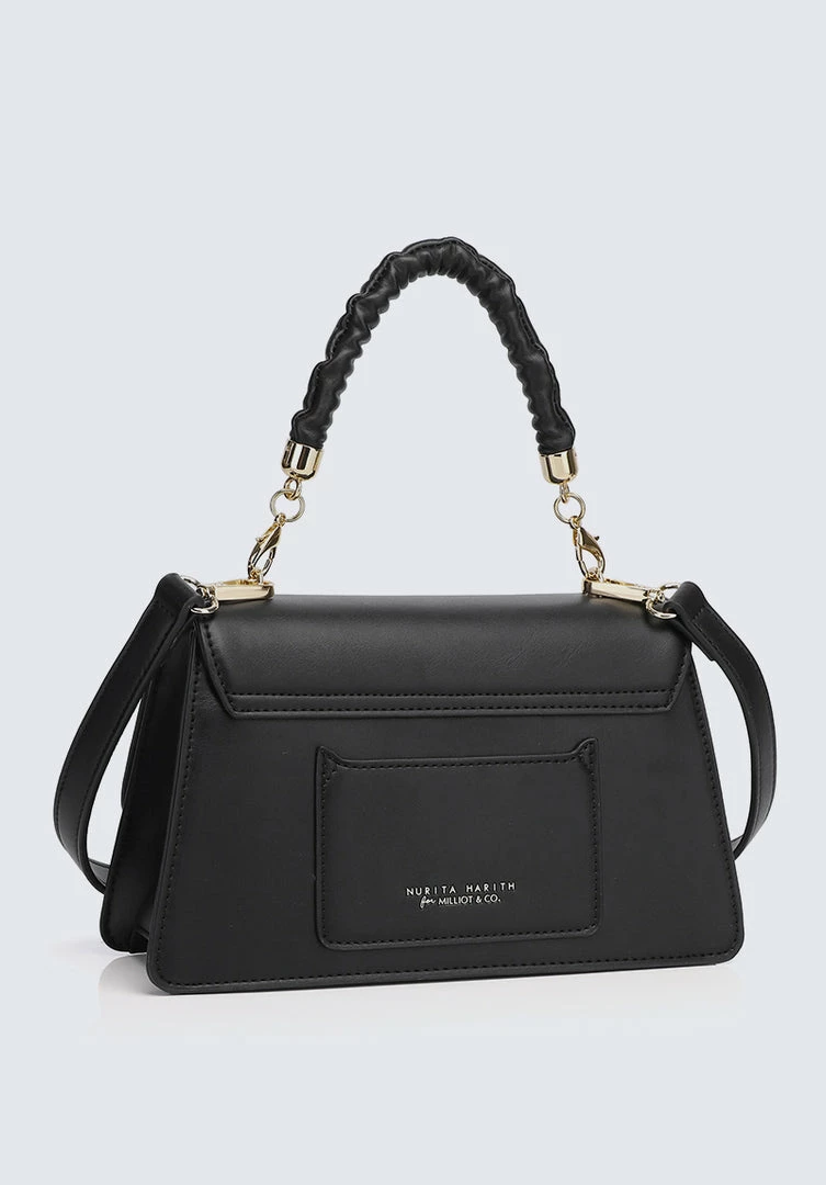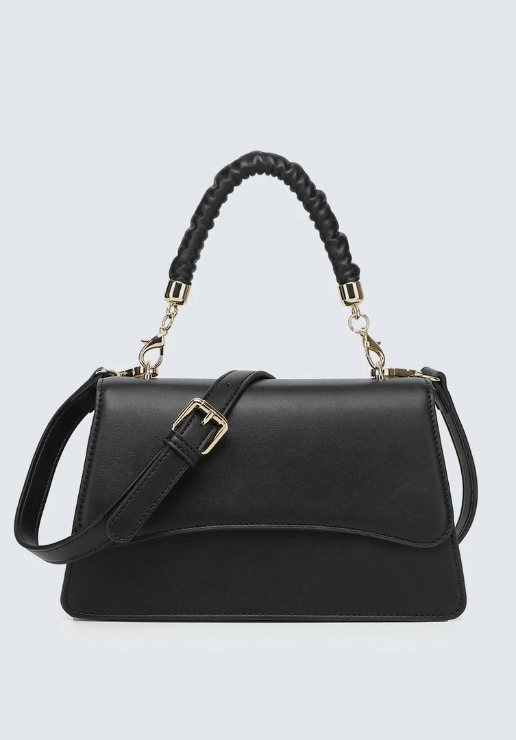 – Faux leather ruched handle shoulder bag