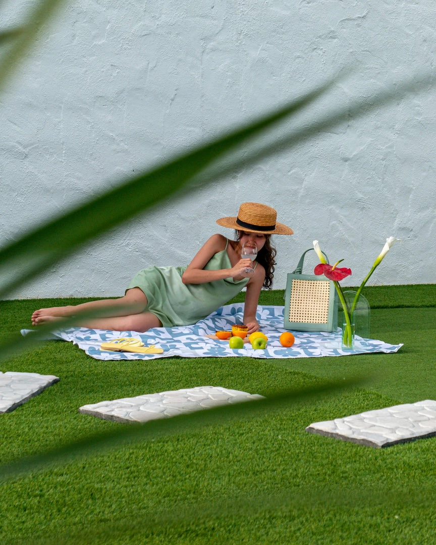 Milliotandco Poppy Printed Picnic Mat (Steel Blue) The Home Edit