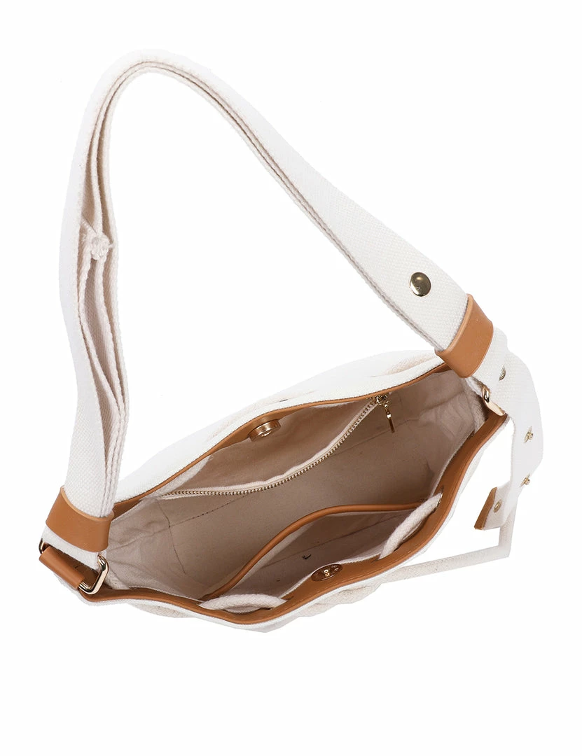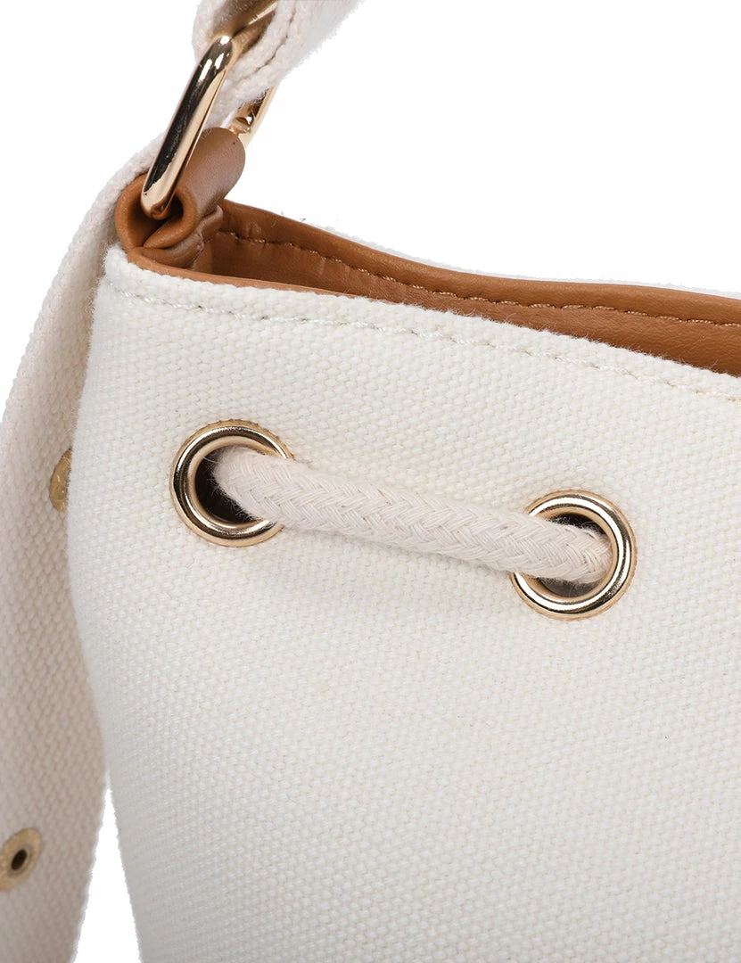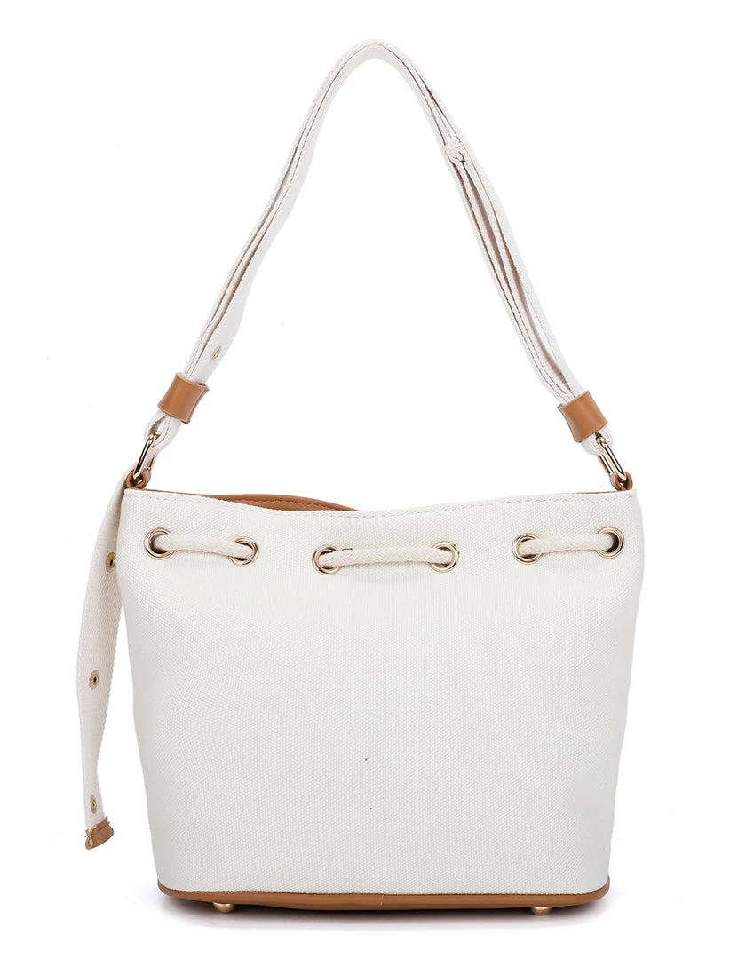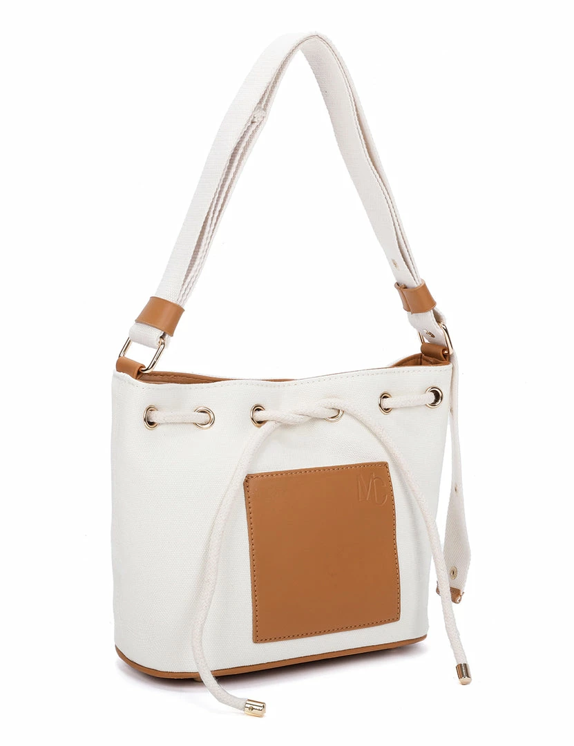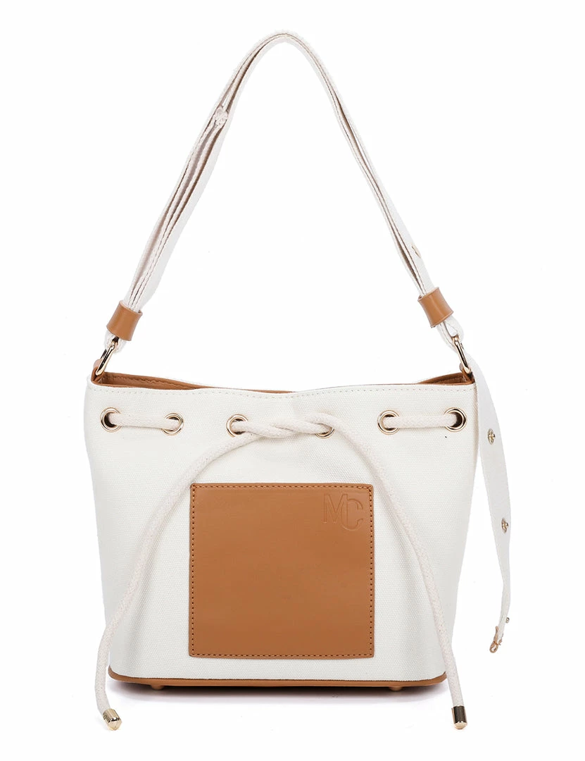 – Two-toned bucket bag with faux leather trims