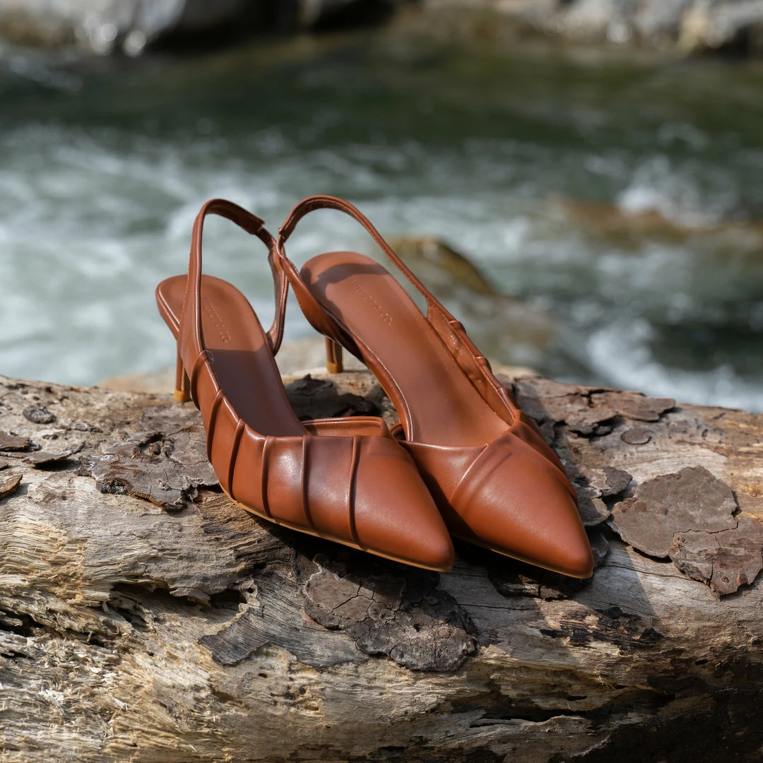 – Pointed toe with pleated design
