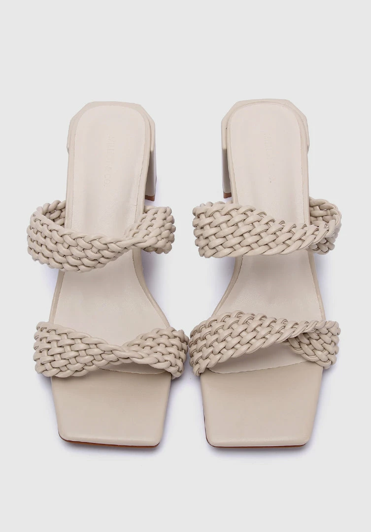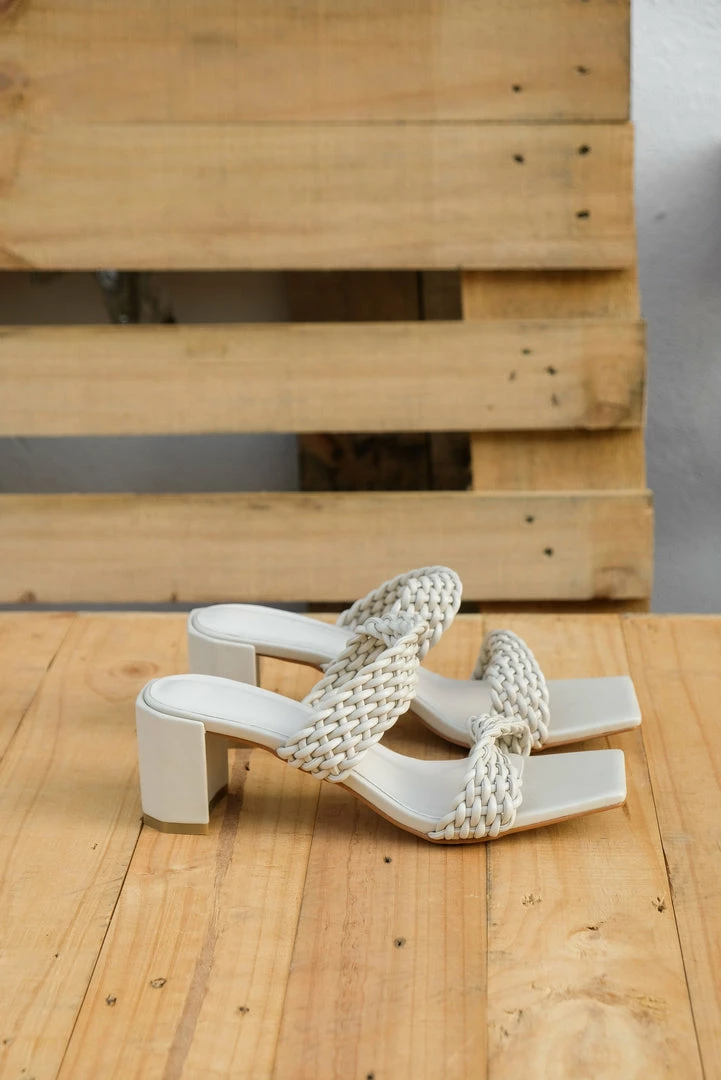 – Twisted weaved strap blocked heels