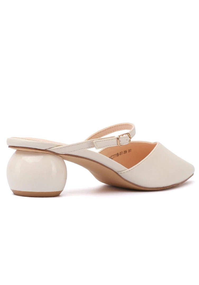 – Faux leather low heels