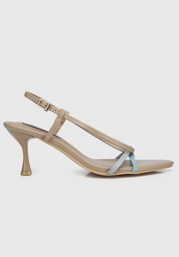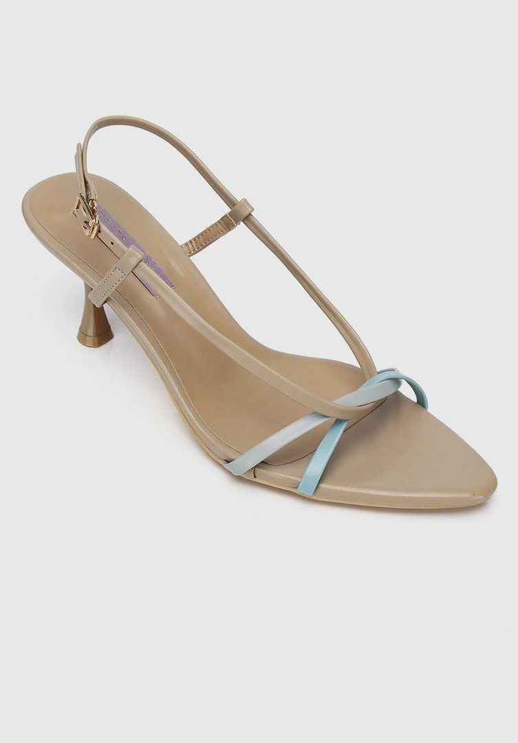 – Pointed toe interlaced strap heels