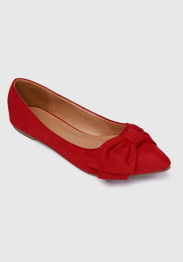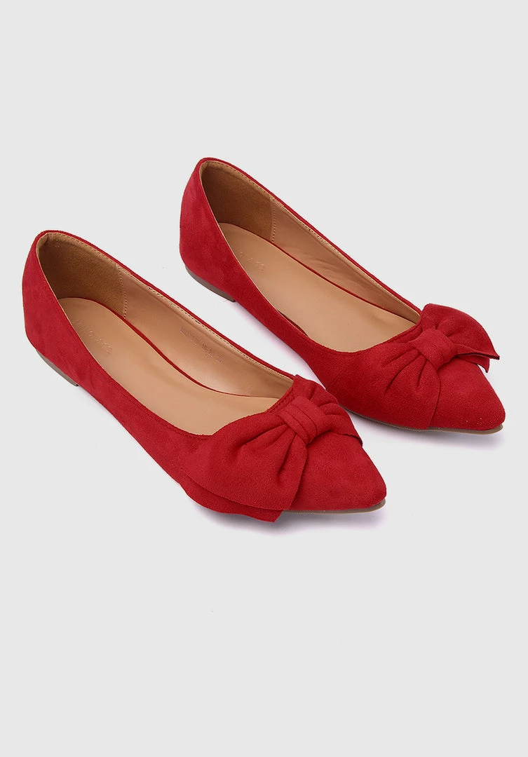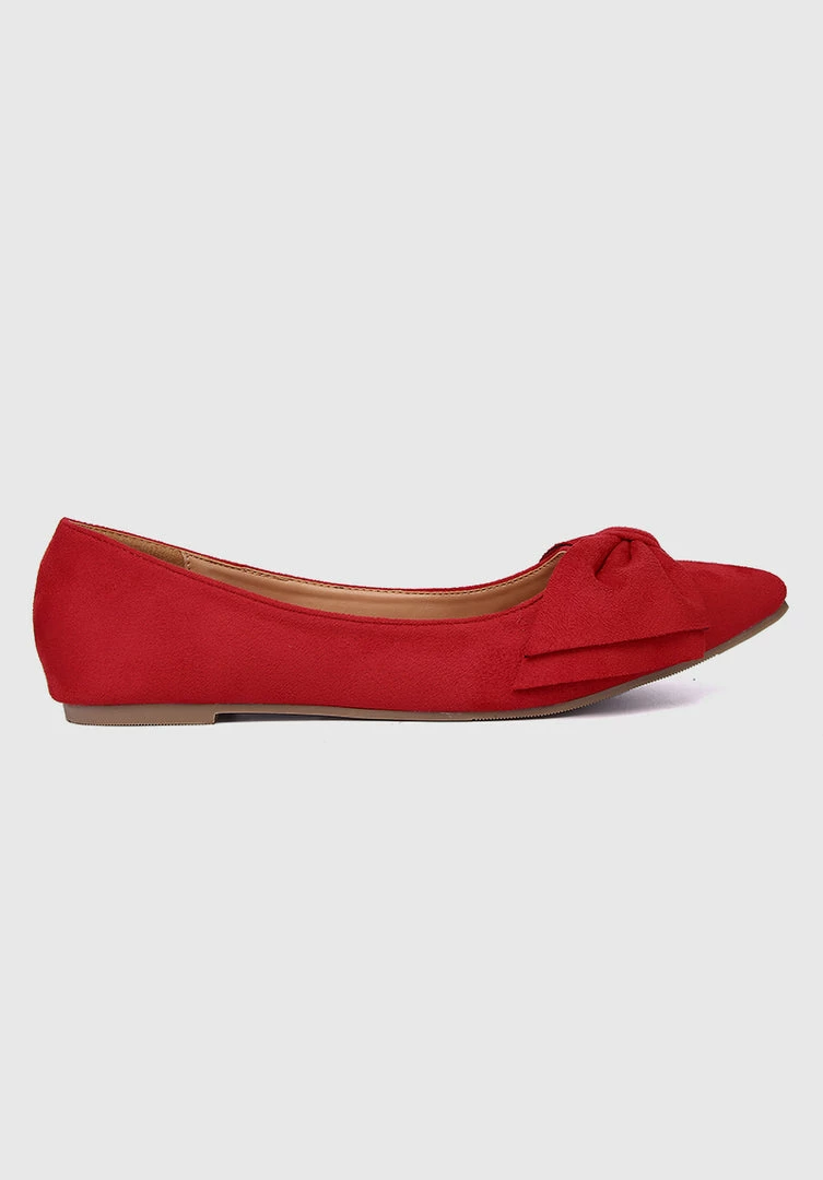 – Faux suede flats with bow details