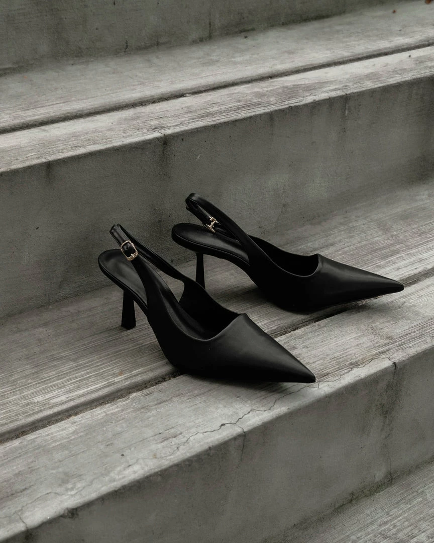 – Pointed toe slingback heels