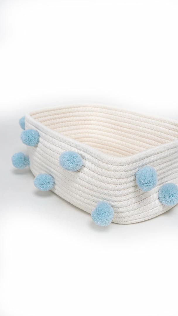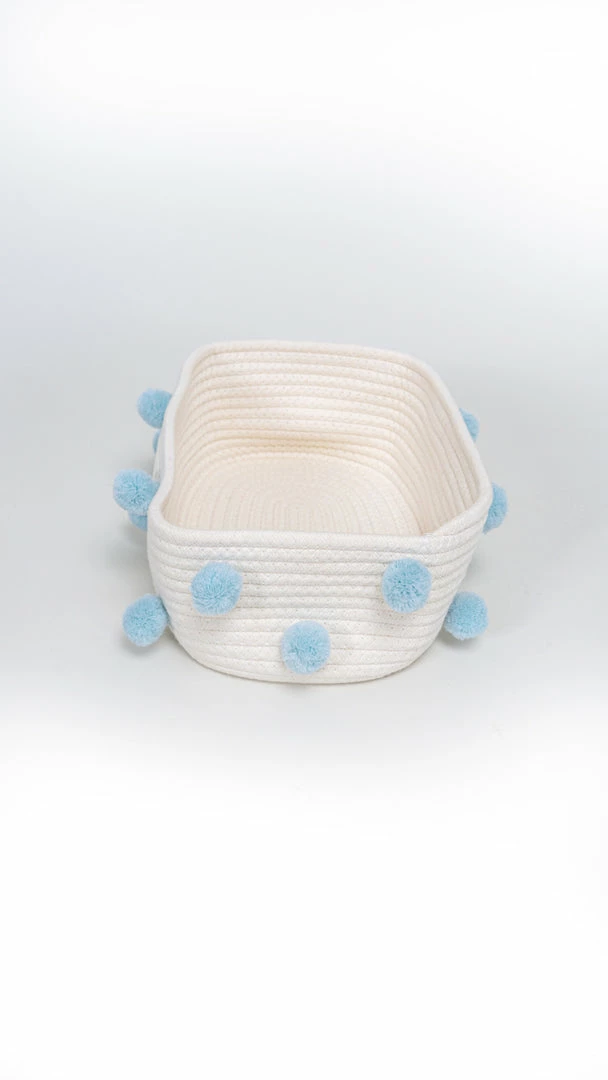 – Multi purpose woven basket with pom poms