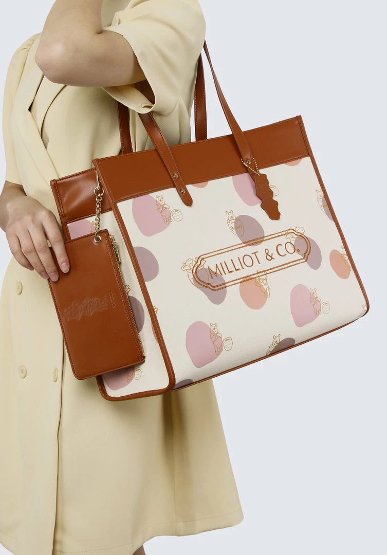 Get ready to jump into an adventure in The Hundred-Acre Wood with Winnie The Pooh! Milliot & Co. honours the most lovable and huggable, ever-hungry bear with this fun collection of bags and shoes. This bright and bubbly collection features Hunny-coloured tones as well as the signature colours of the silly old bear’s dearest friends. In celebration of the beloved characters of the forest, the spirited range offers quirky everyday staples for those who found a faithful friend in Winnie the Pooh.